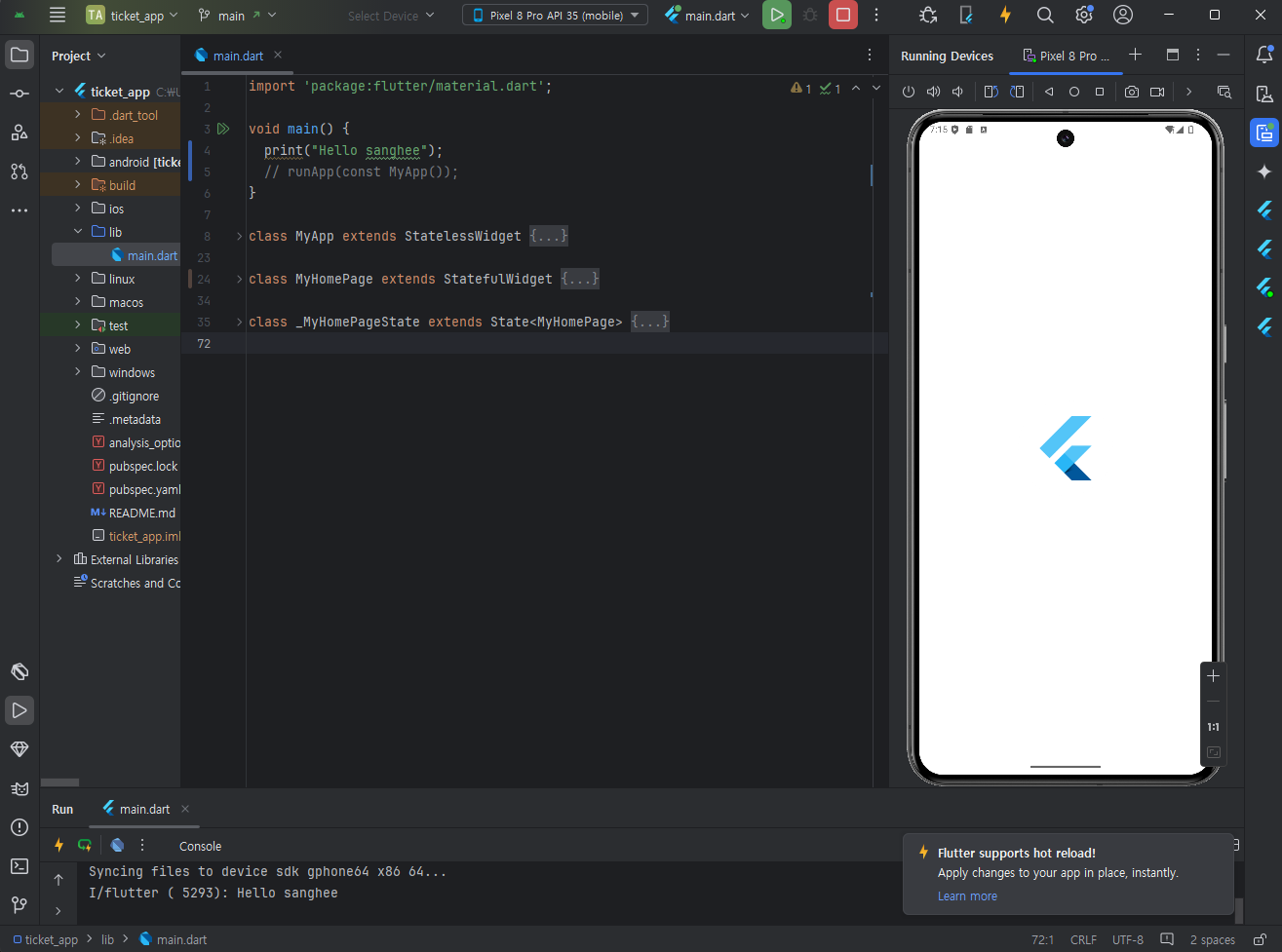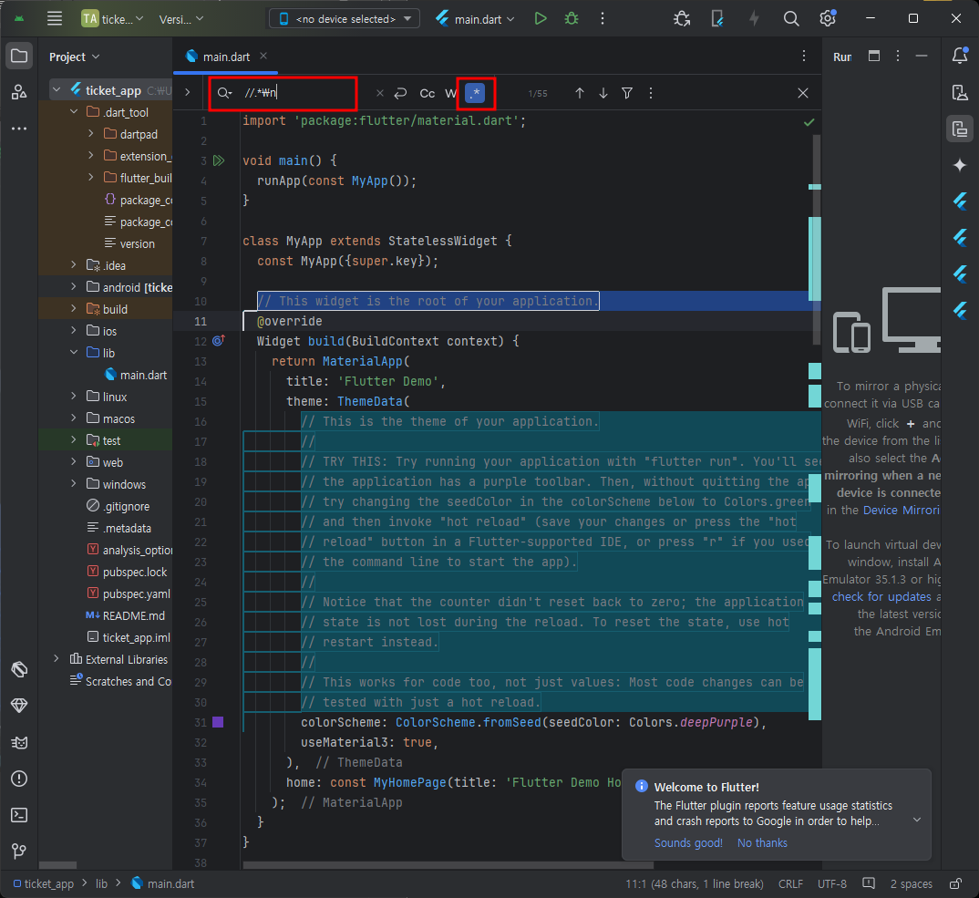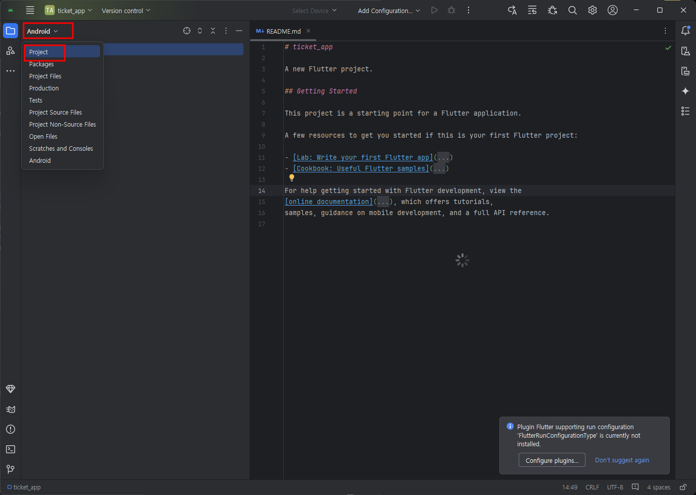 Flutter new project 만들기 - application - 경로선택 - 이름지정 - 확인
