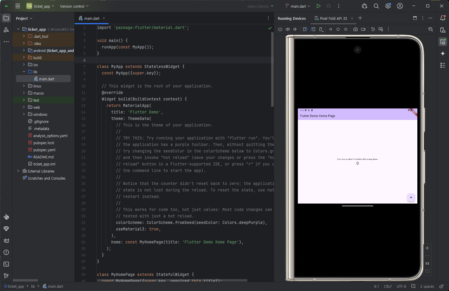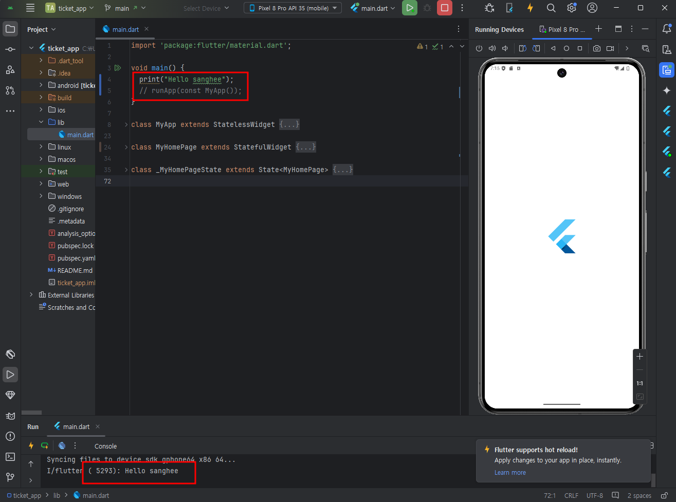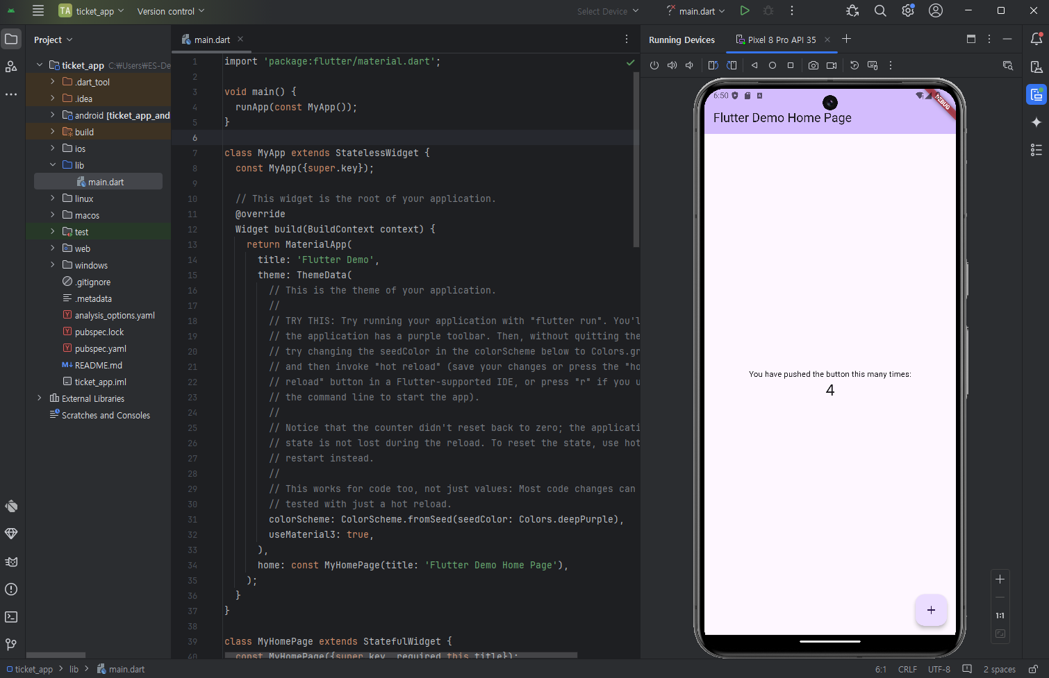 Flutter new project 만들기 - application - 경로선택 - 이름지정 - 확인