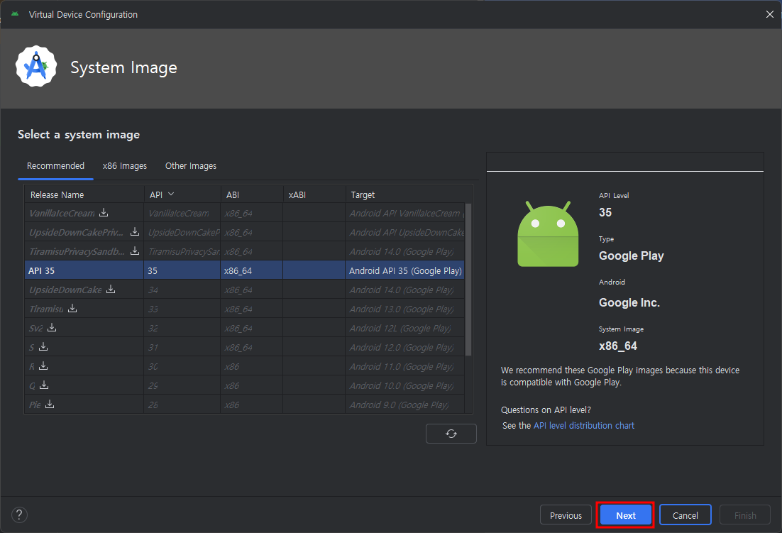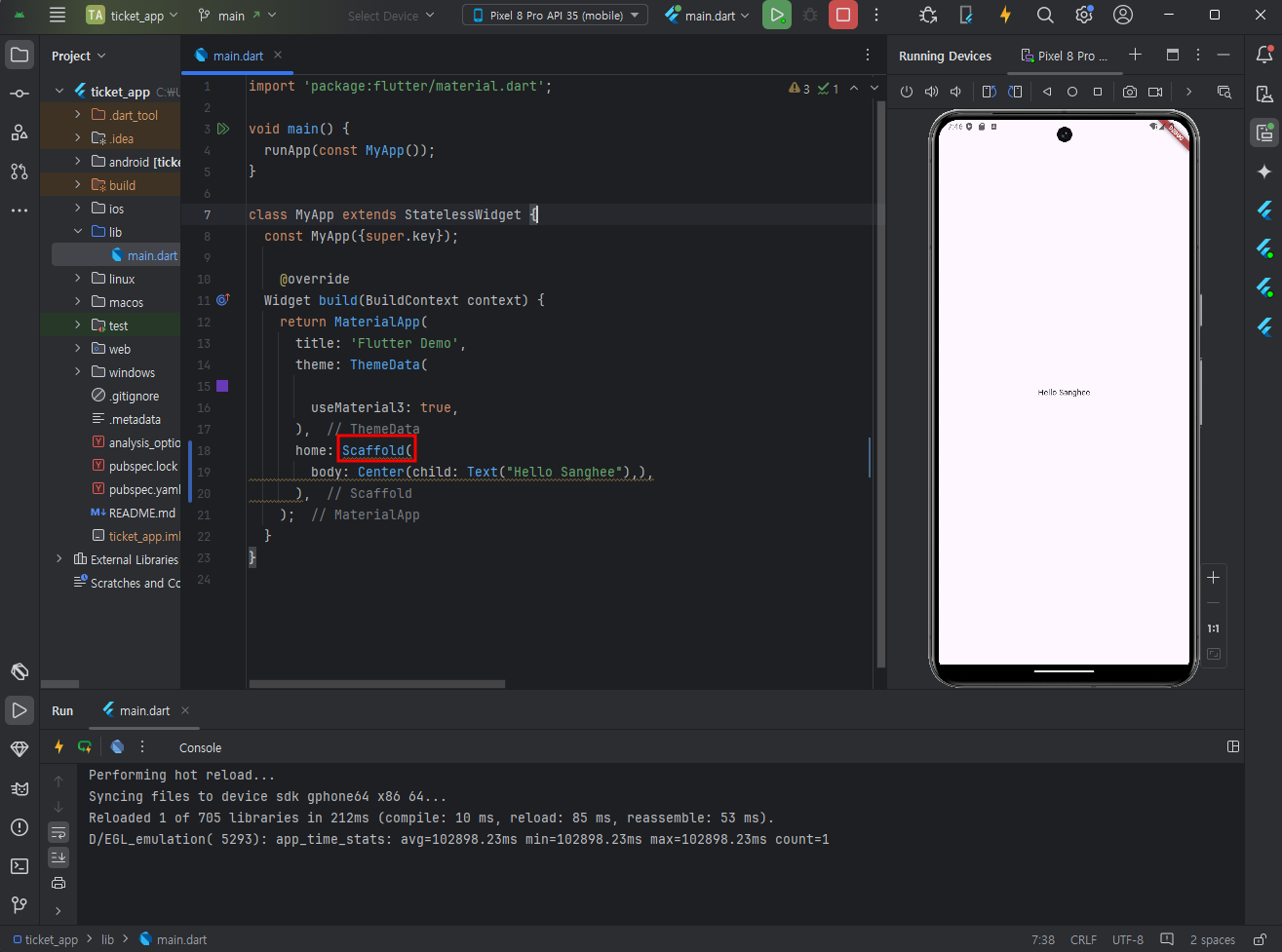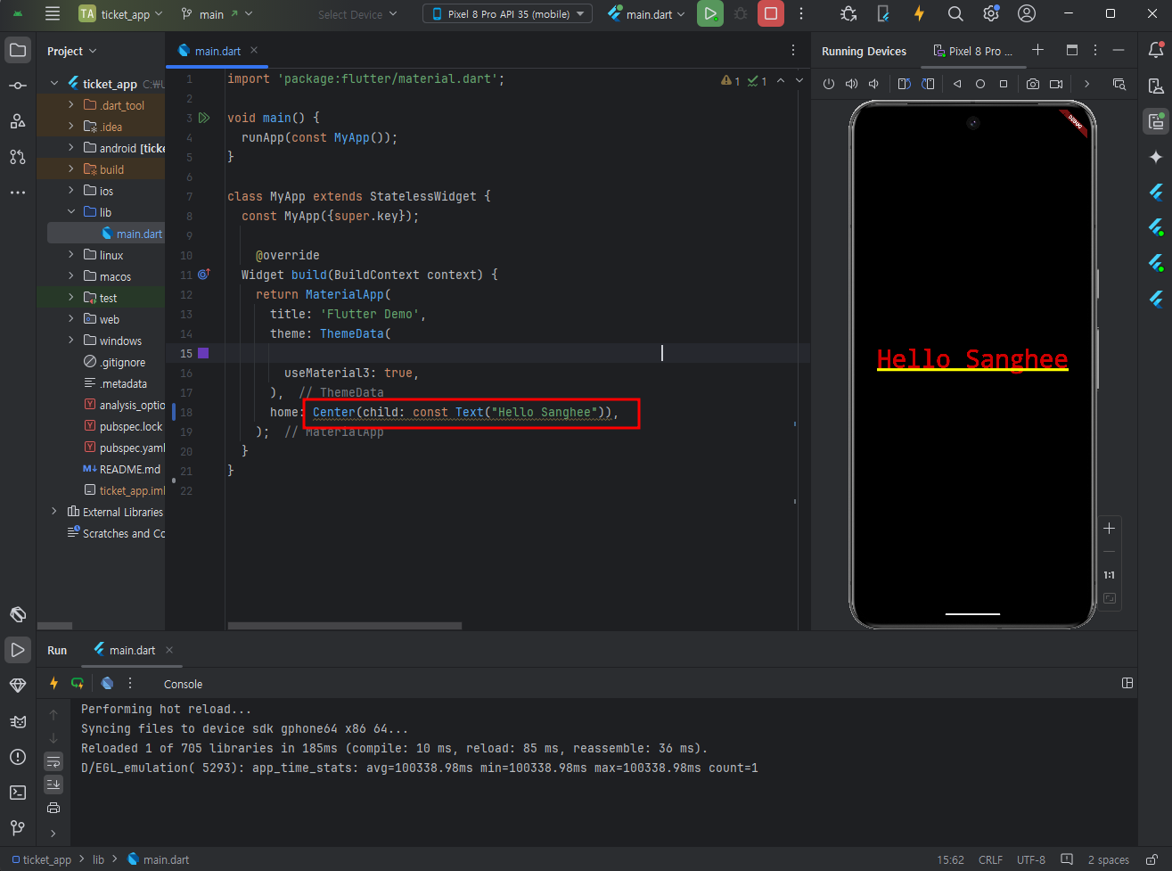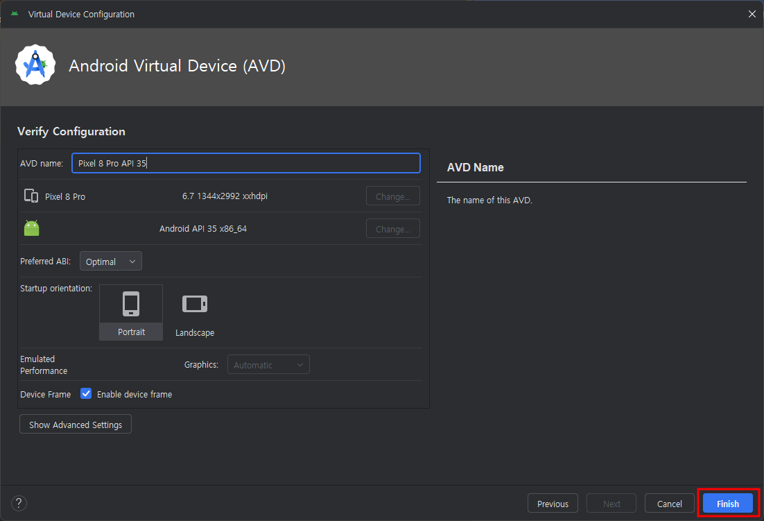 디바이스 선택 후 run화면 확인하기