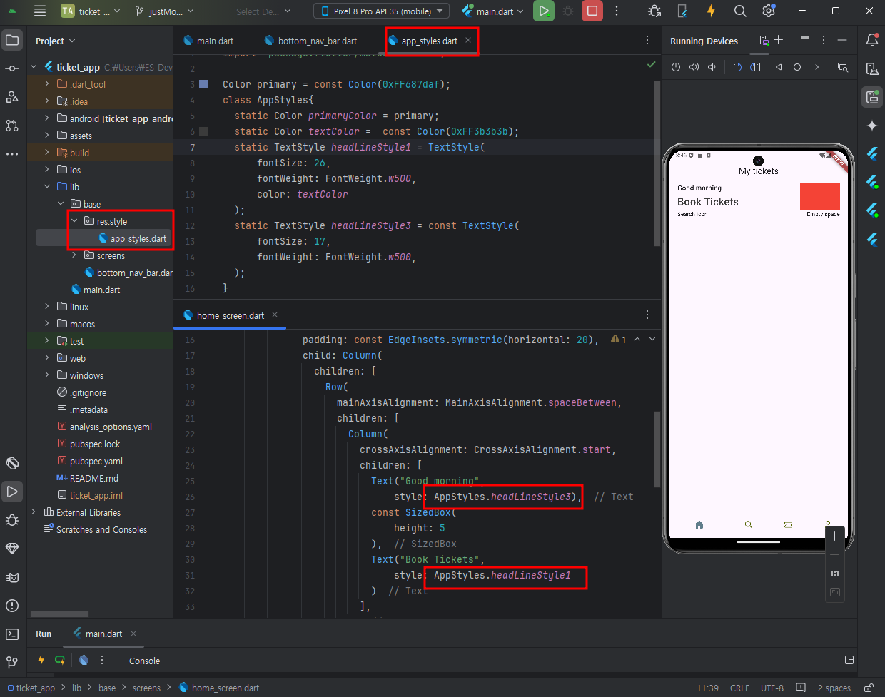 코드를 보면 기존 본문 style에서 색상만 변경할때 copywith를 썼다.