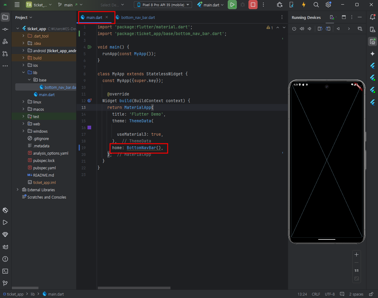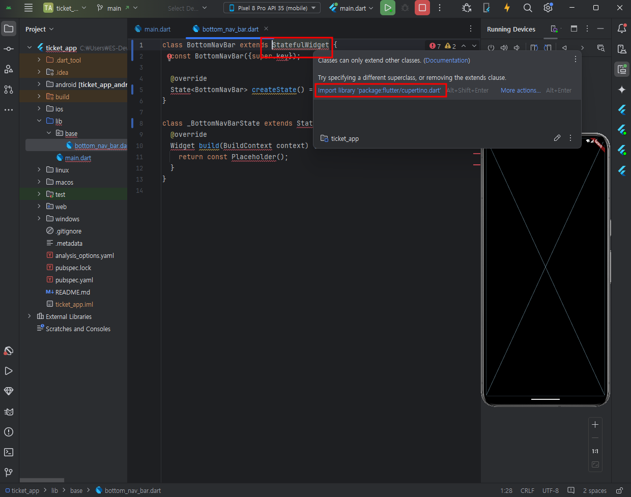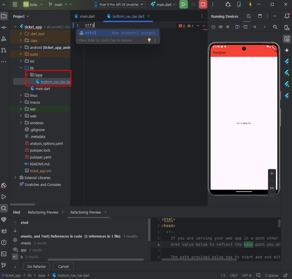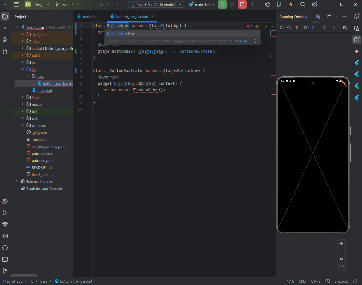 base폴더 안에 bottom_nav_bar dart 파일을 만들고 - stful - 기본 class코드를 불러온다.