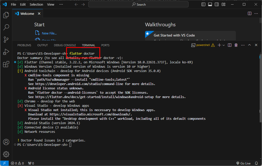 flutter 설치 확인