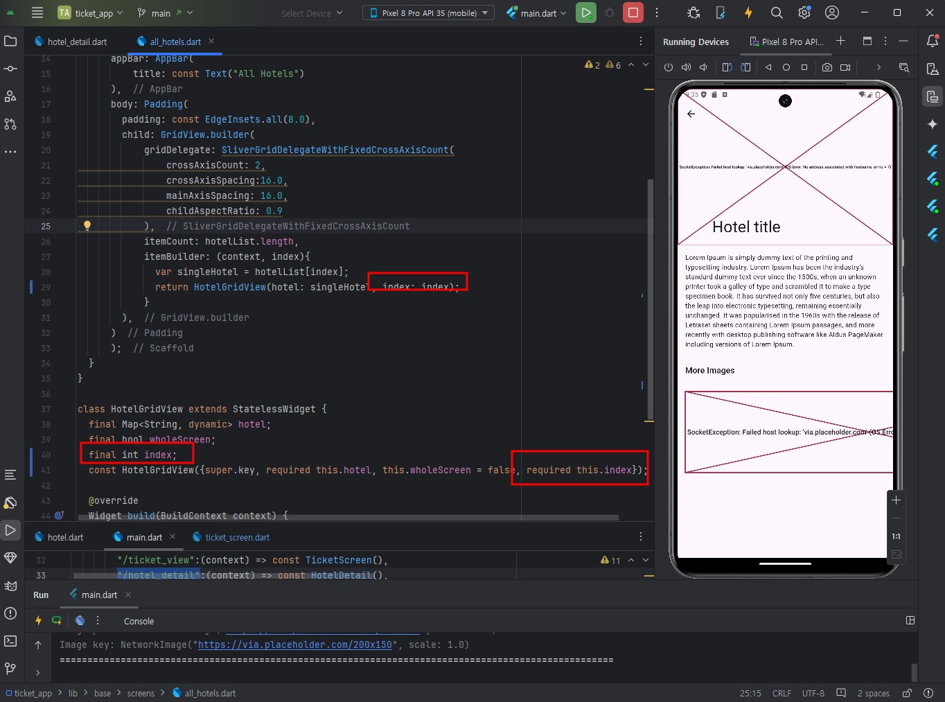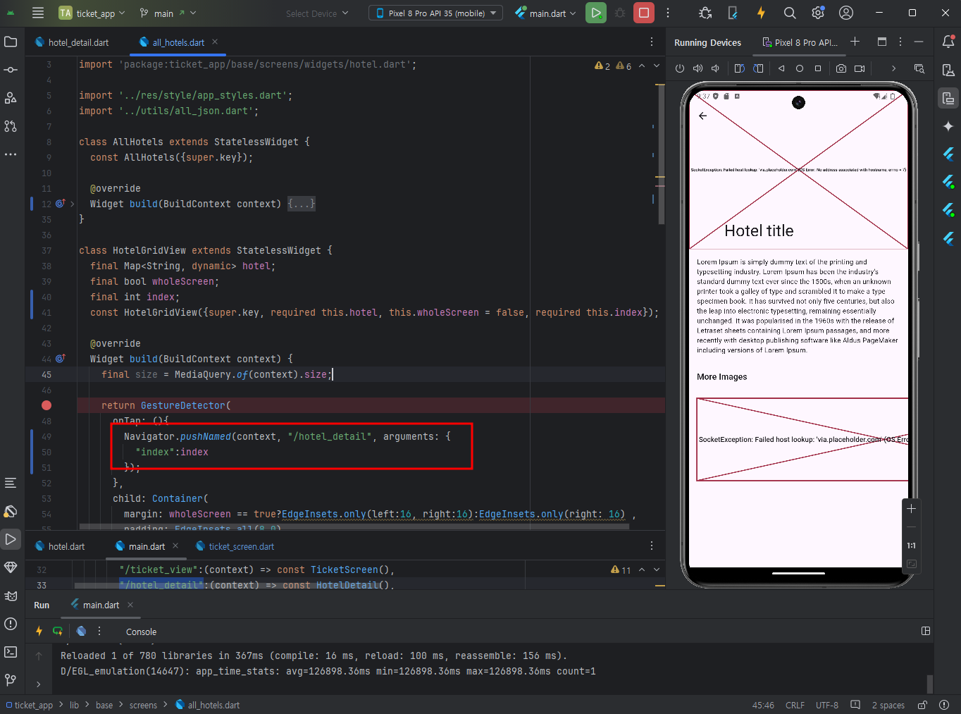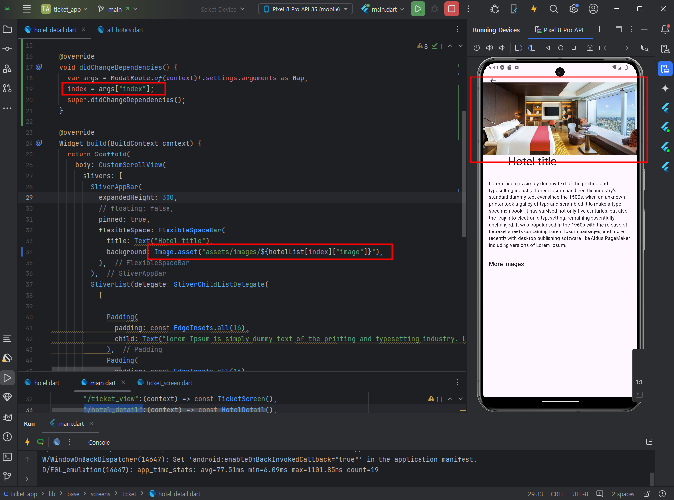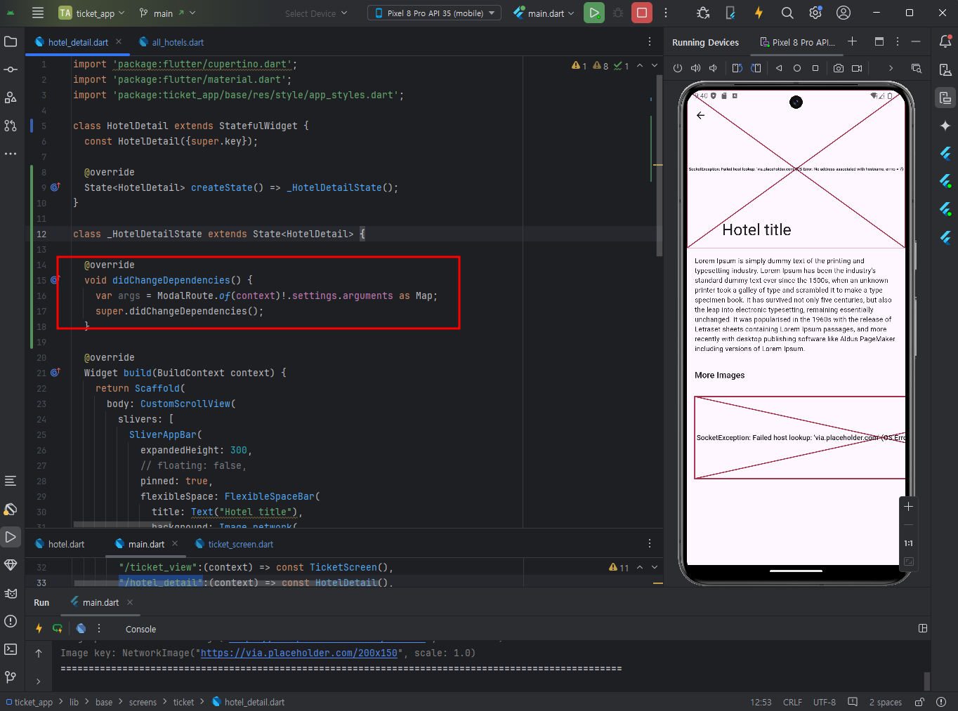 didChangeDependencies메서드에서 setting된 arg의 값에 따른 index의 ticket 상세페이지로 넘어갈 수 있도록 한다