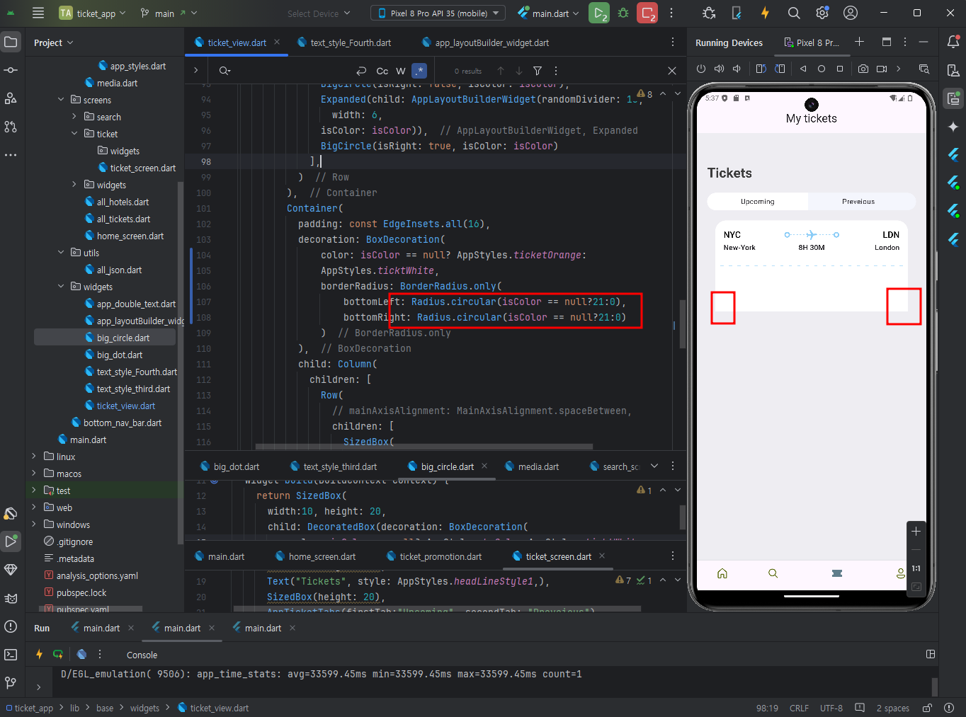 BorderRadius.circular로 원을 만들고