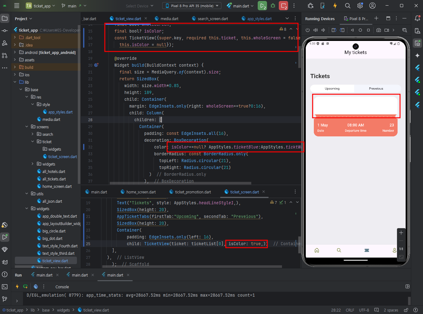 마지막 TicketView은 isColor 값을 삭제해 색상있는 ticket으로 보여지도록한다