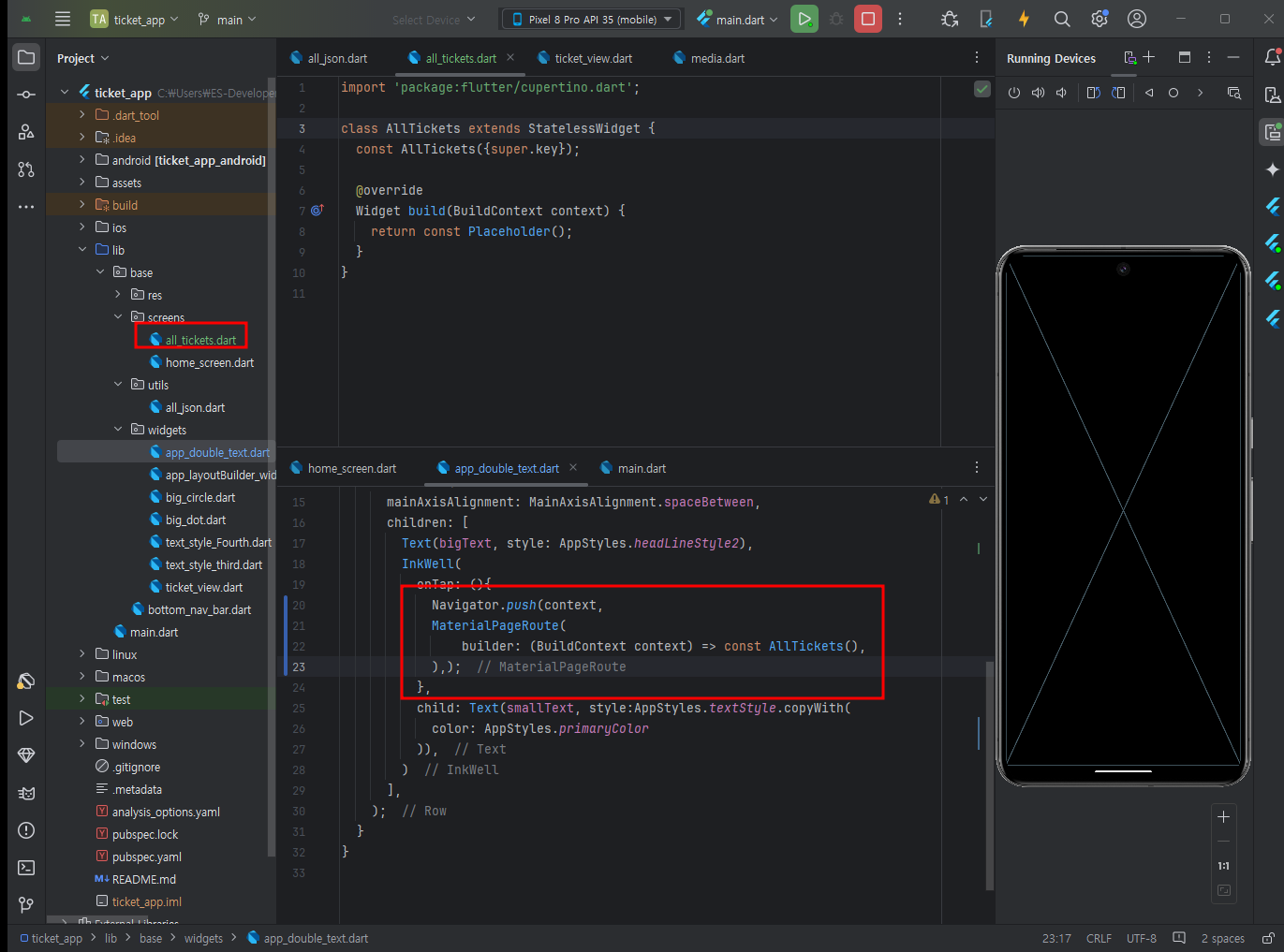 viewall에 tap시 alltickets로 이동하도록 pageroute