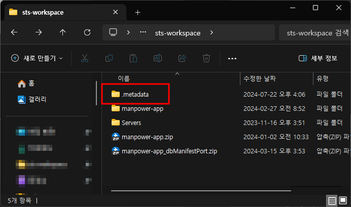새로운 .metadata 폴더가 생기며 정상작동 완료