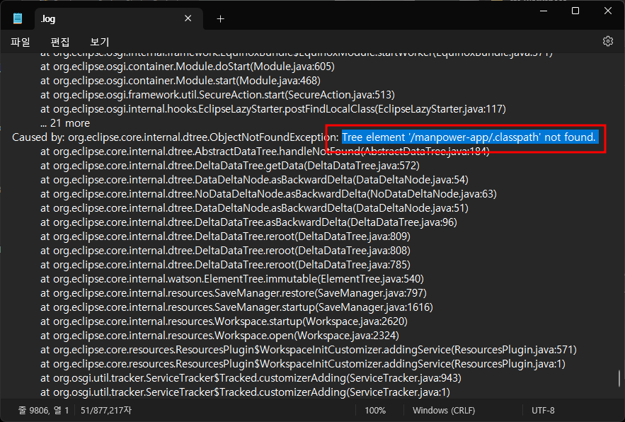 An error has occurred. 알려주는 log파일의 log를 확인한다.
