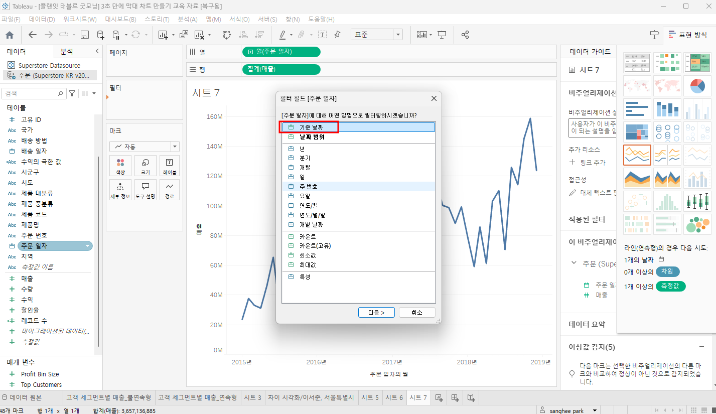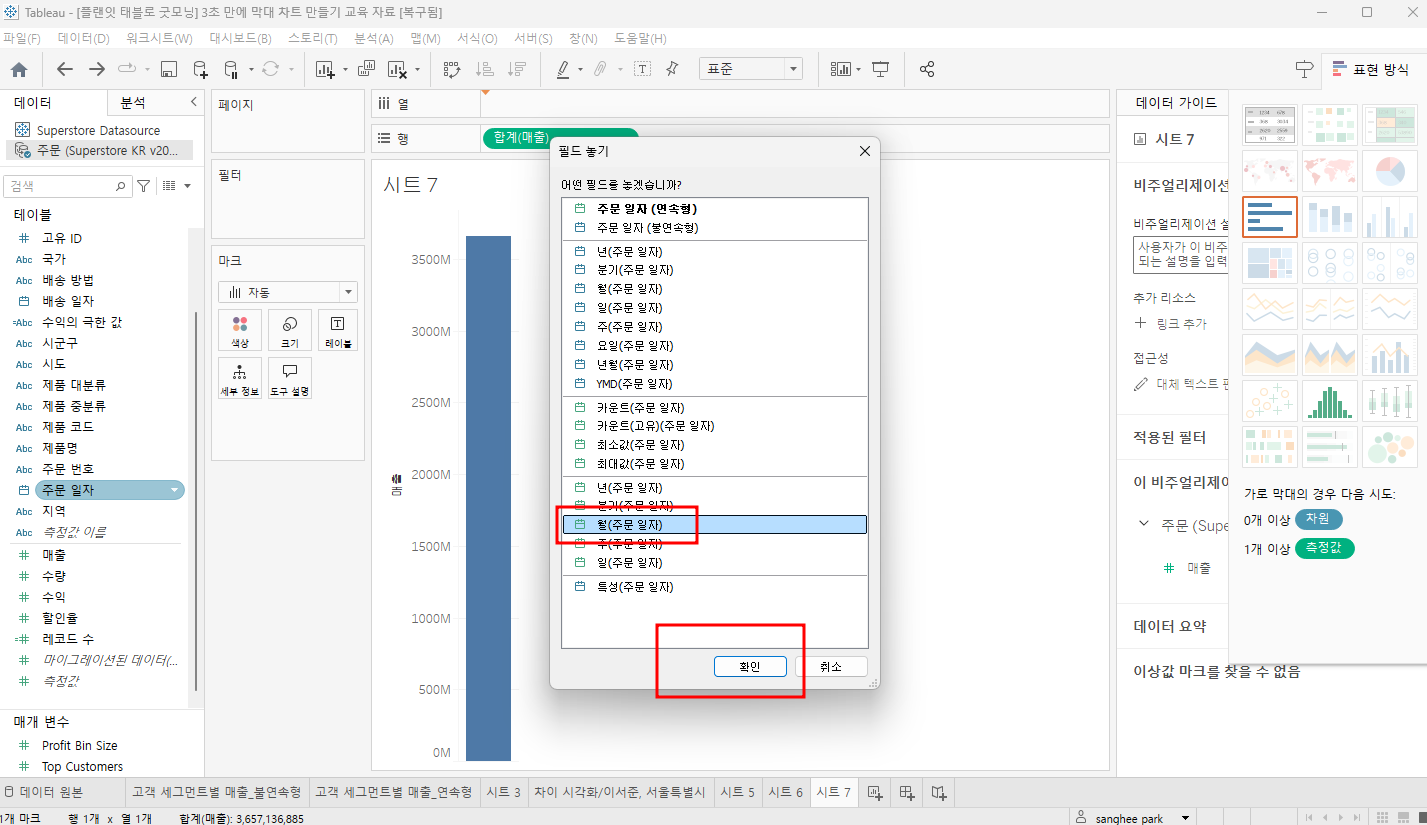 ctrl과 함께 주문일자 드래그 - 월 주문일자 선택