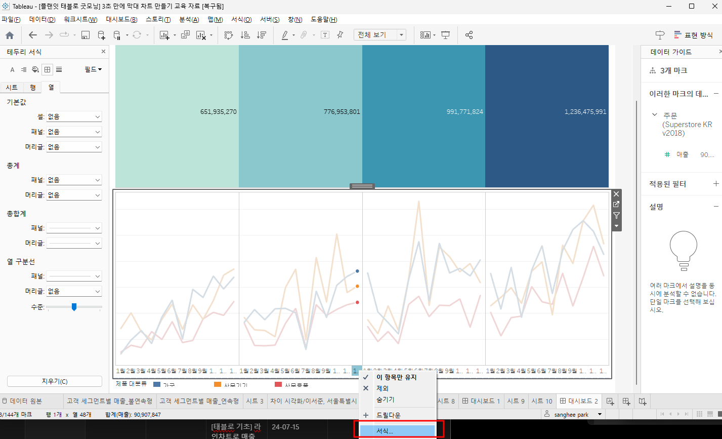 | Tableau - 데이터 서식 정하기 (0) | 2024.08.01 |
