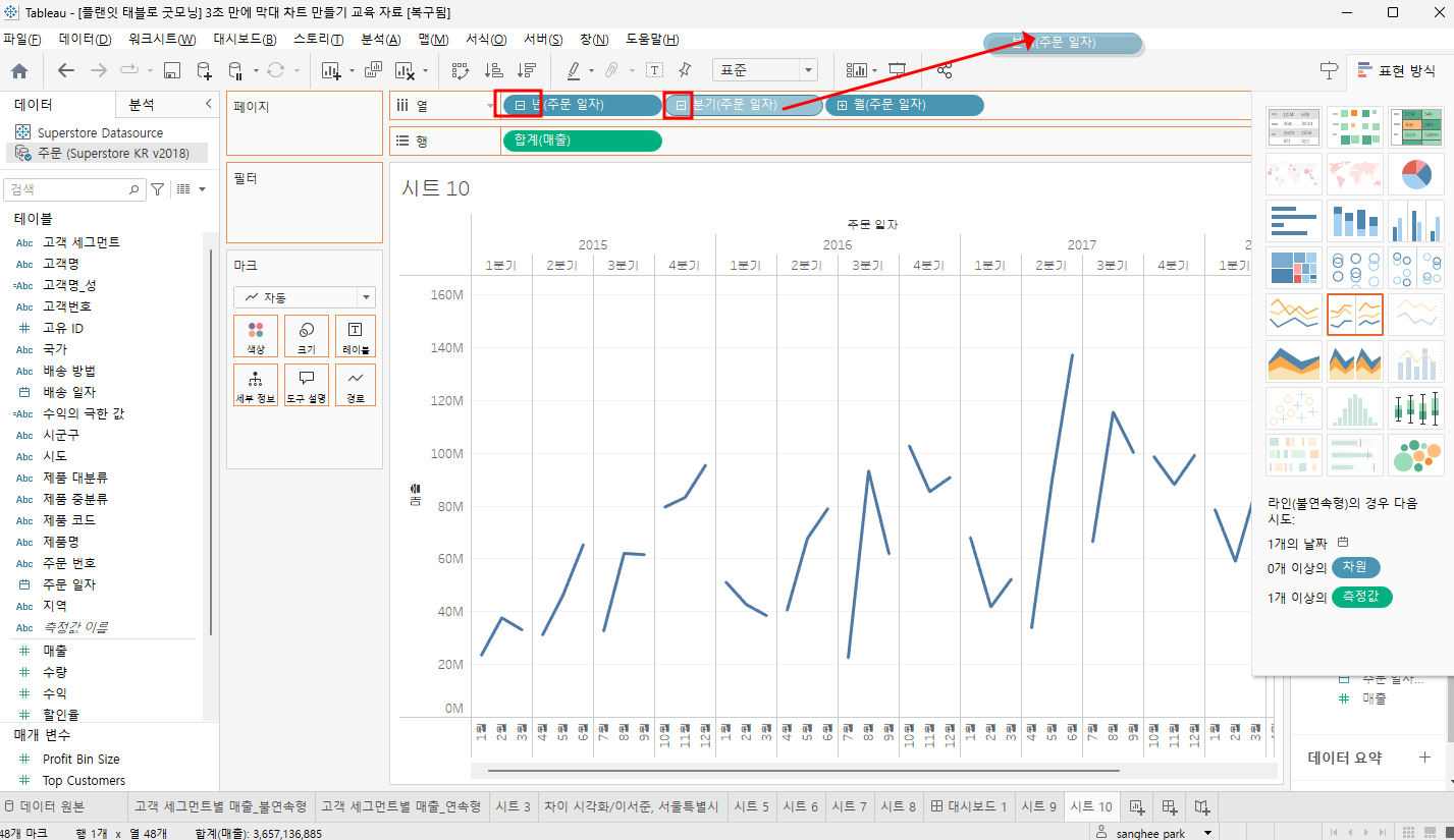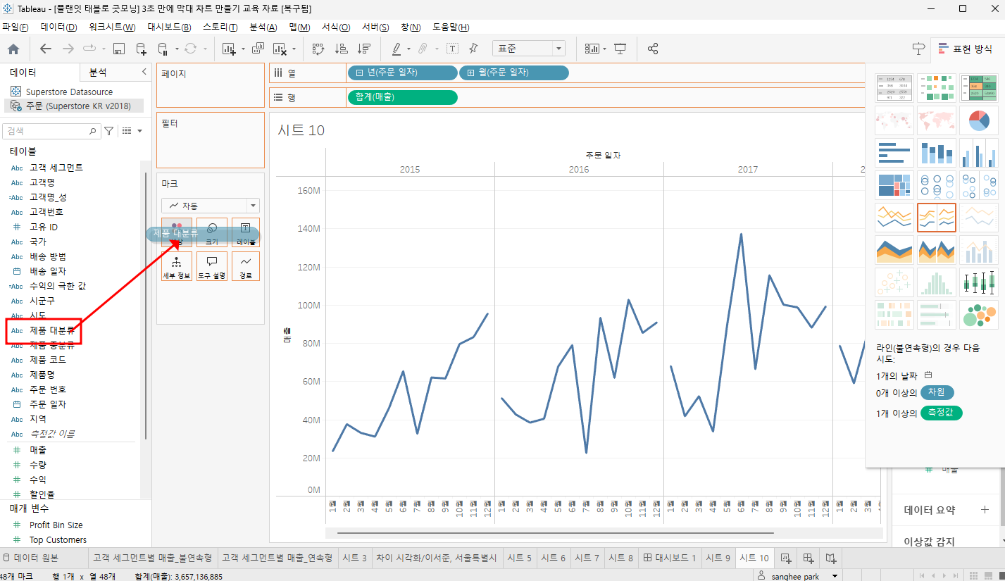 새로운시트 - 라인 그래프 만들기