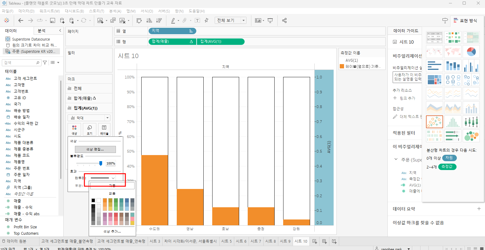 | Tableau - 영역형 가변 너비 라인 차트 만들기 (0) | 2024.08.02 |
