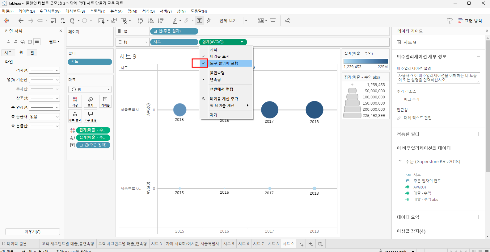 상관없는 데이터 숨기기 - 도구설명에 포함 - 해제