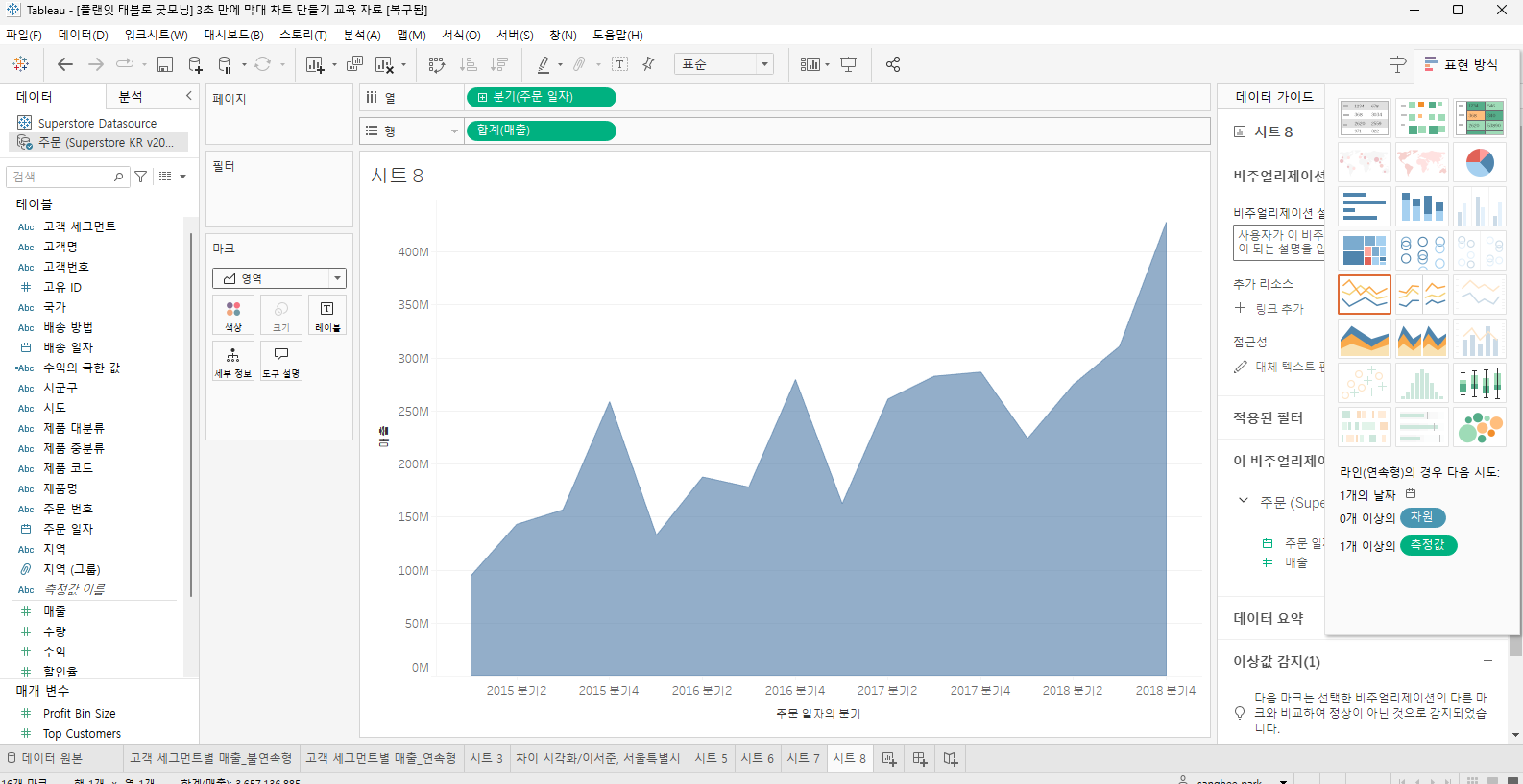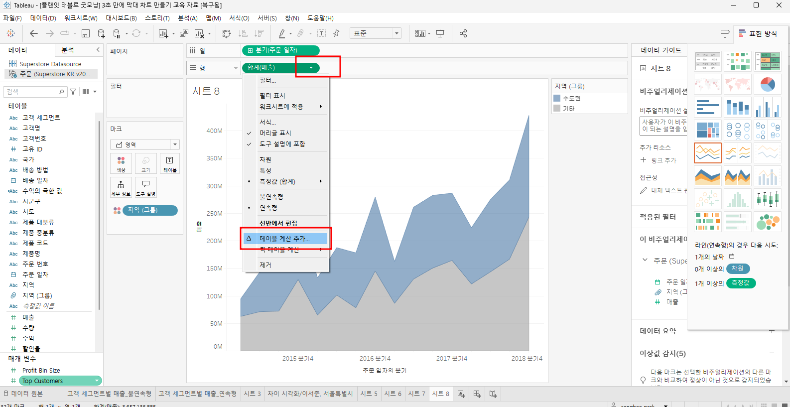 | Tableau - 누적 영역 차트 만들기 (0) | 2024.08.02 |