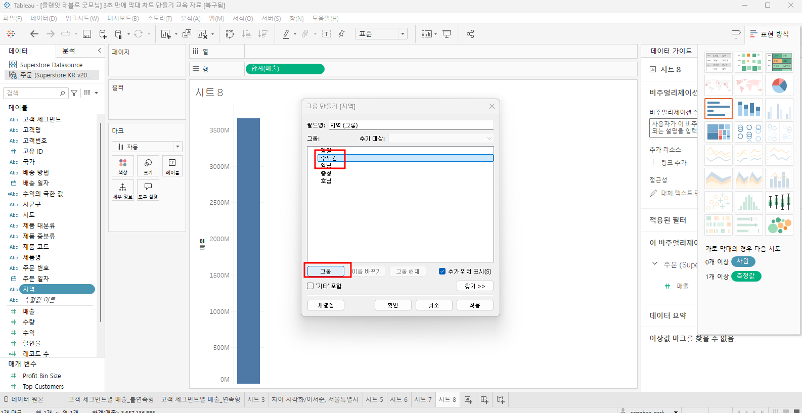 생성한 그룹지역 - 색상으로 드래그