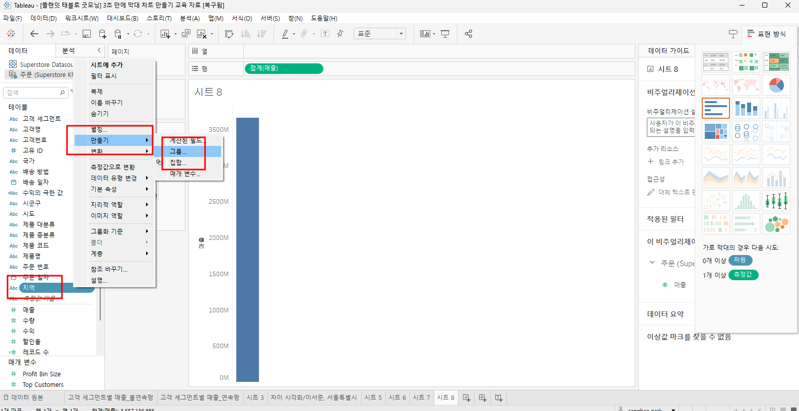 | Tableau - 벌룬 차트 만들기 (0) | 2024.08.02 |