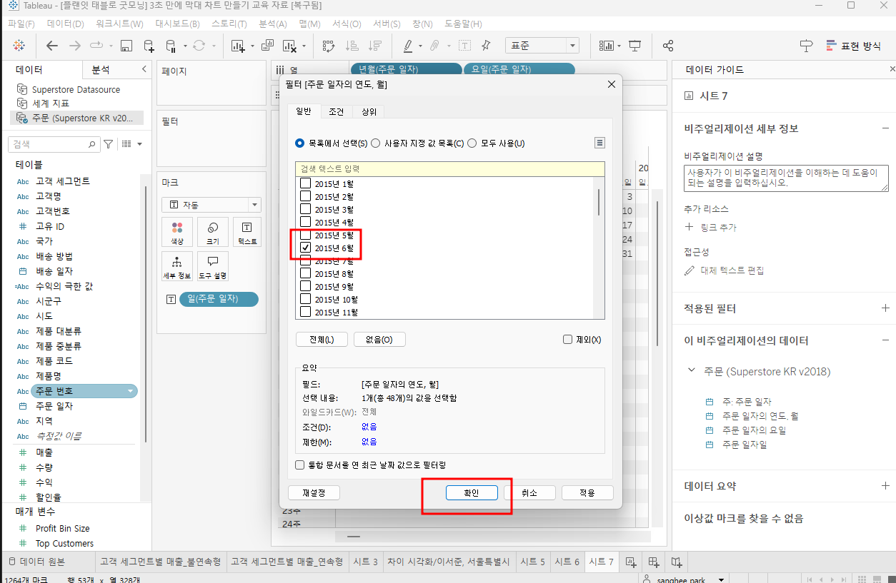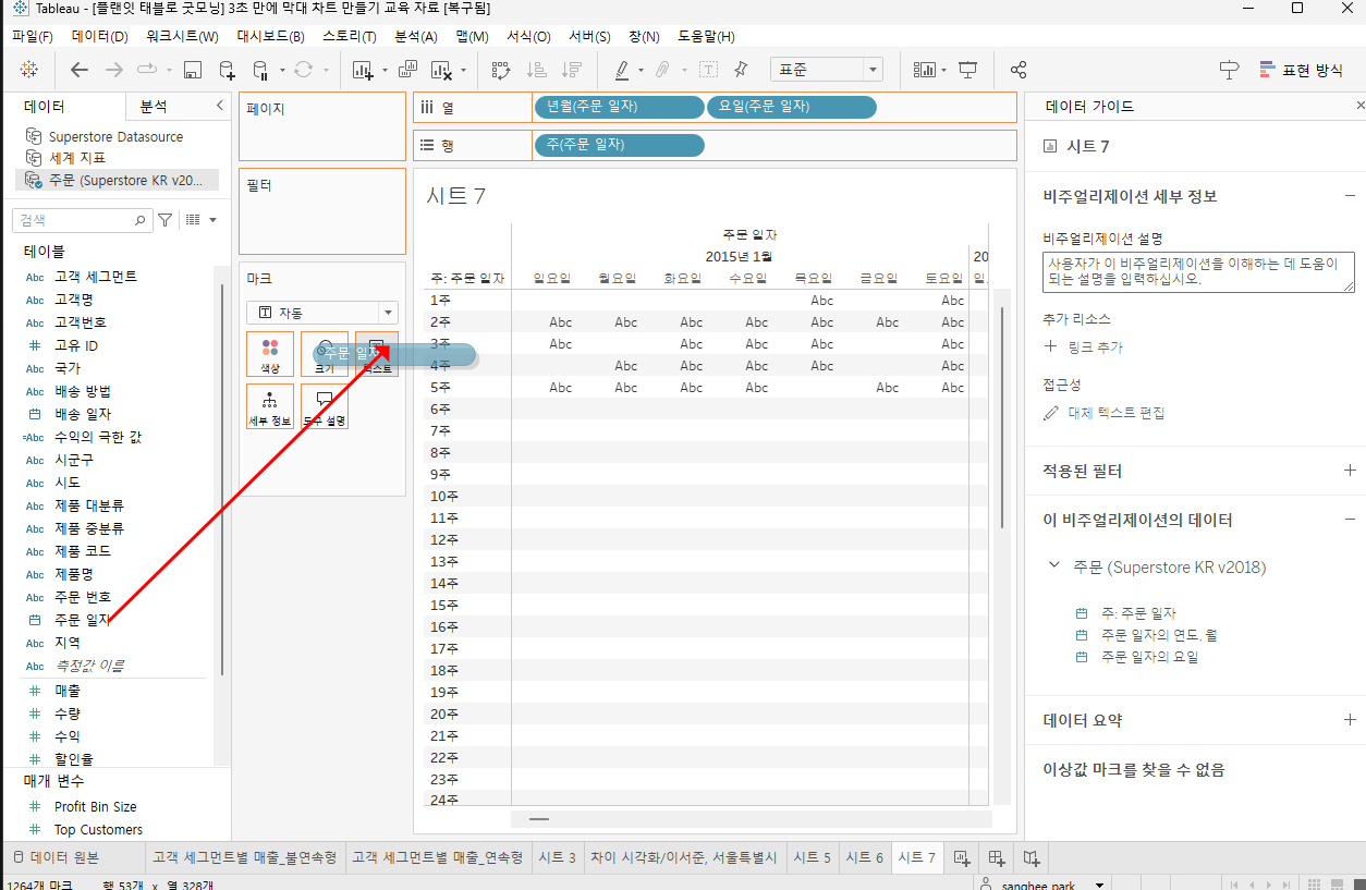 | Tableau - 연속형/불연속형 차이 확인하기 (0) | 2024.08.02 |