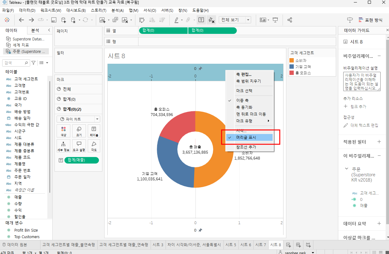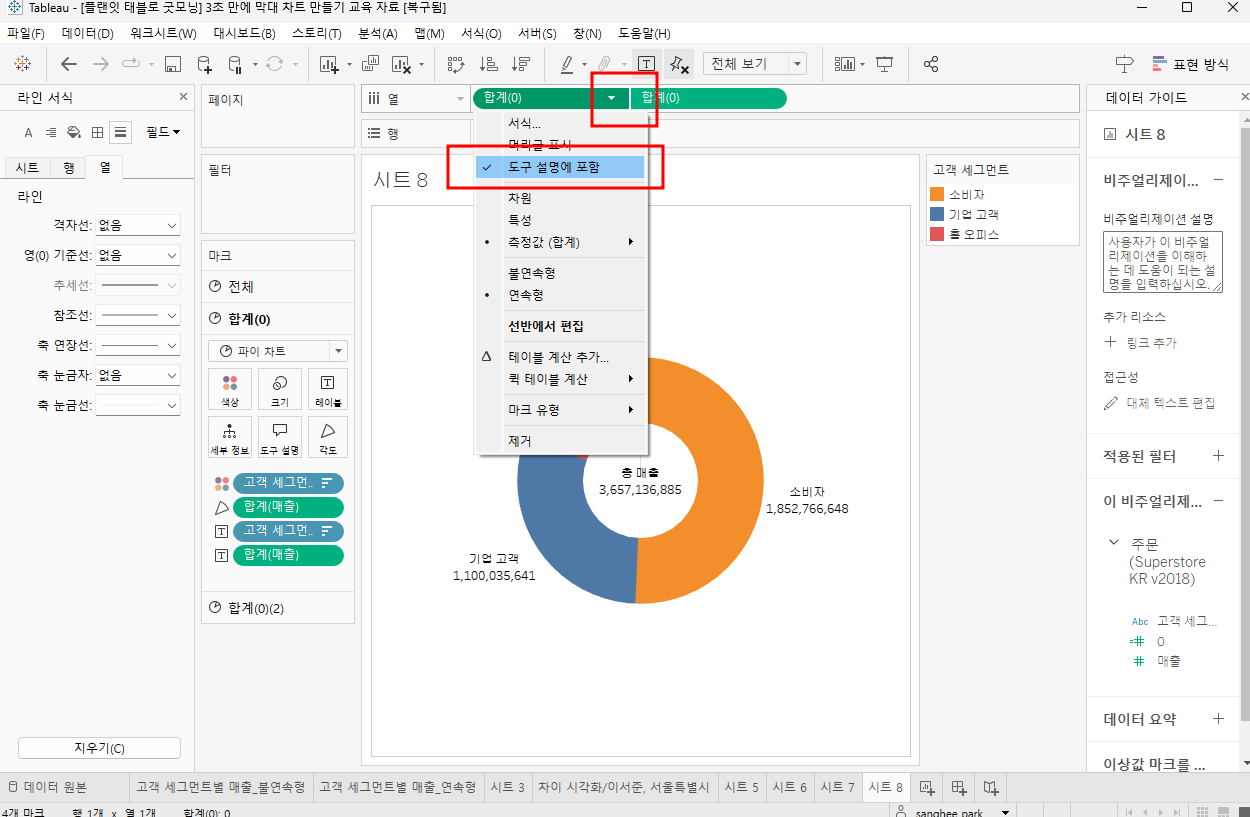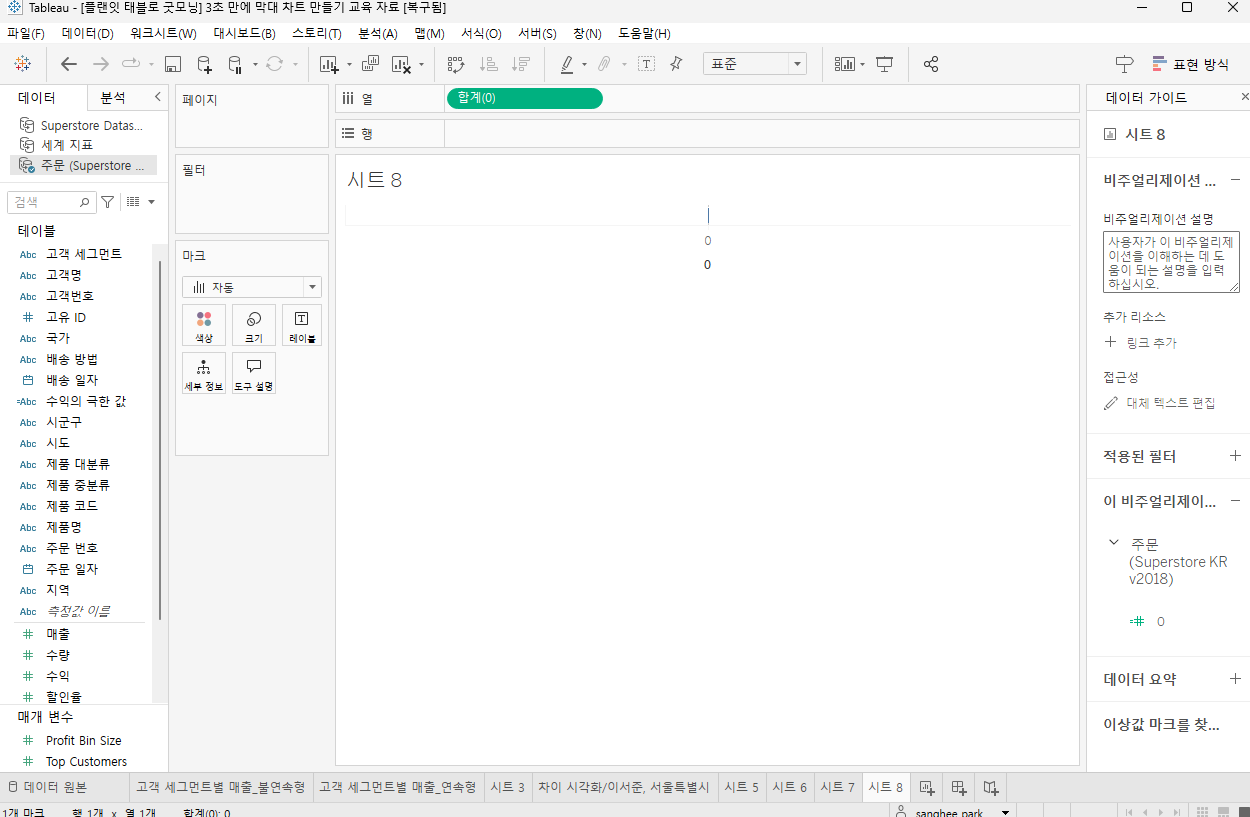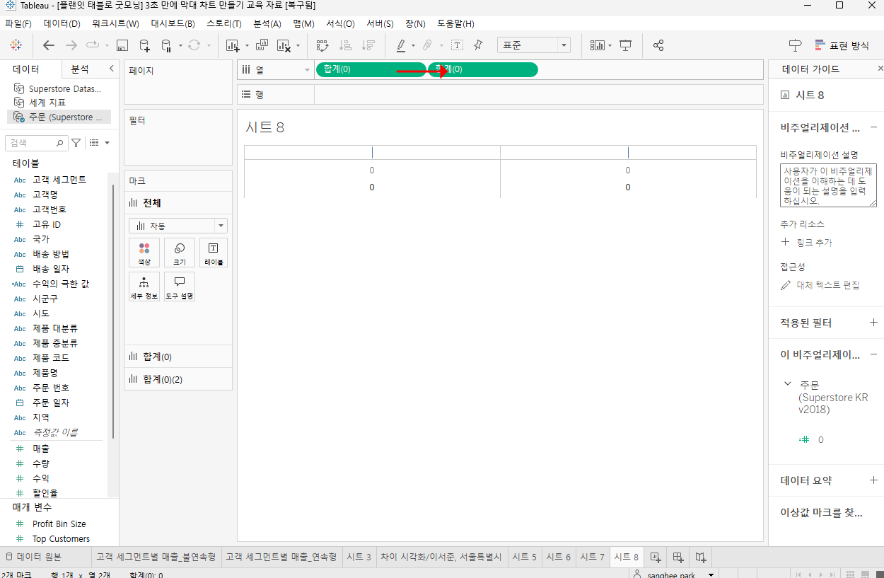 | Tableau - 연속형/불연속형 차이 확인하기 (0) | 2024.08.02 |