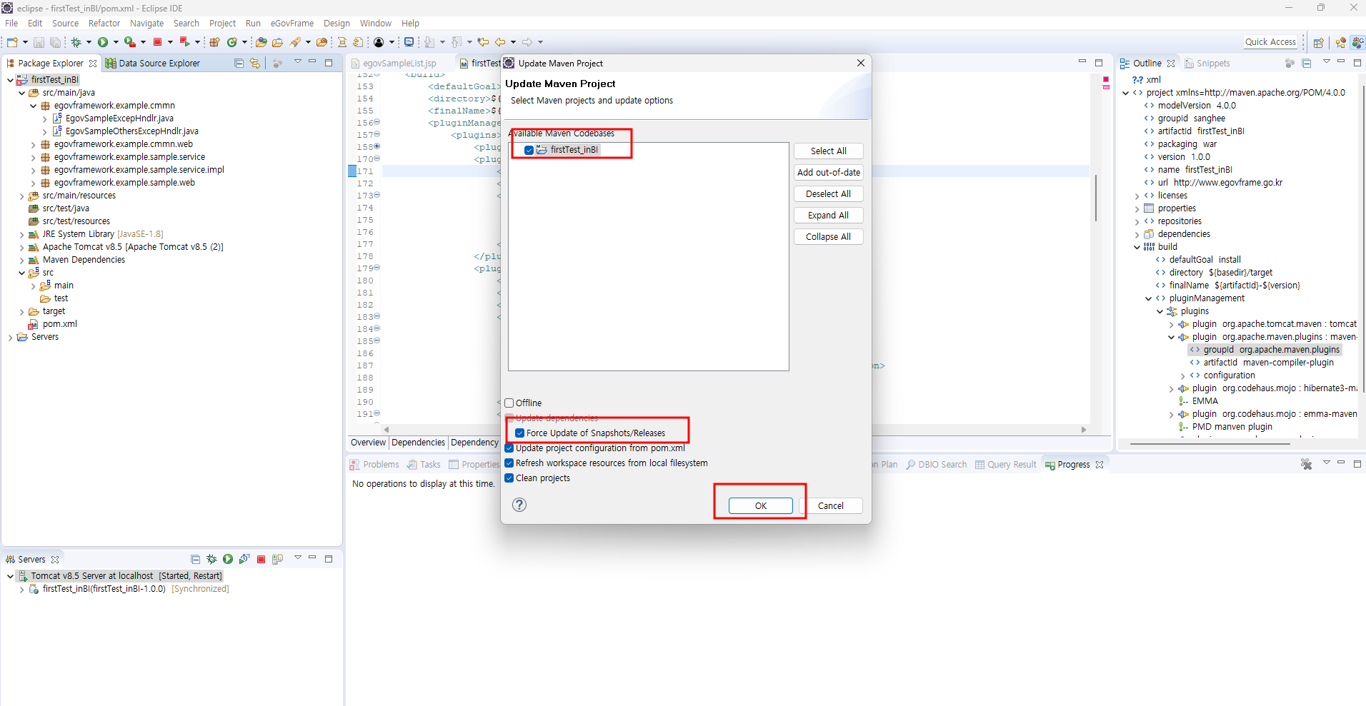 force update of snapshots/release 선택 - ok