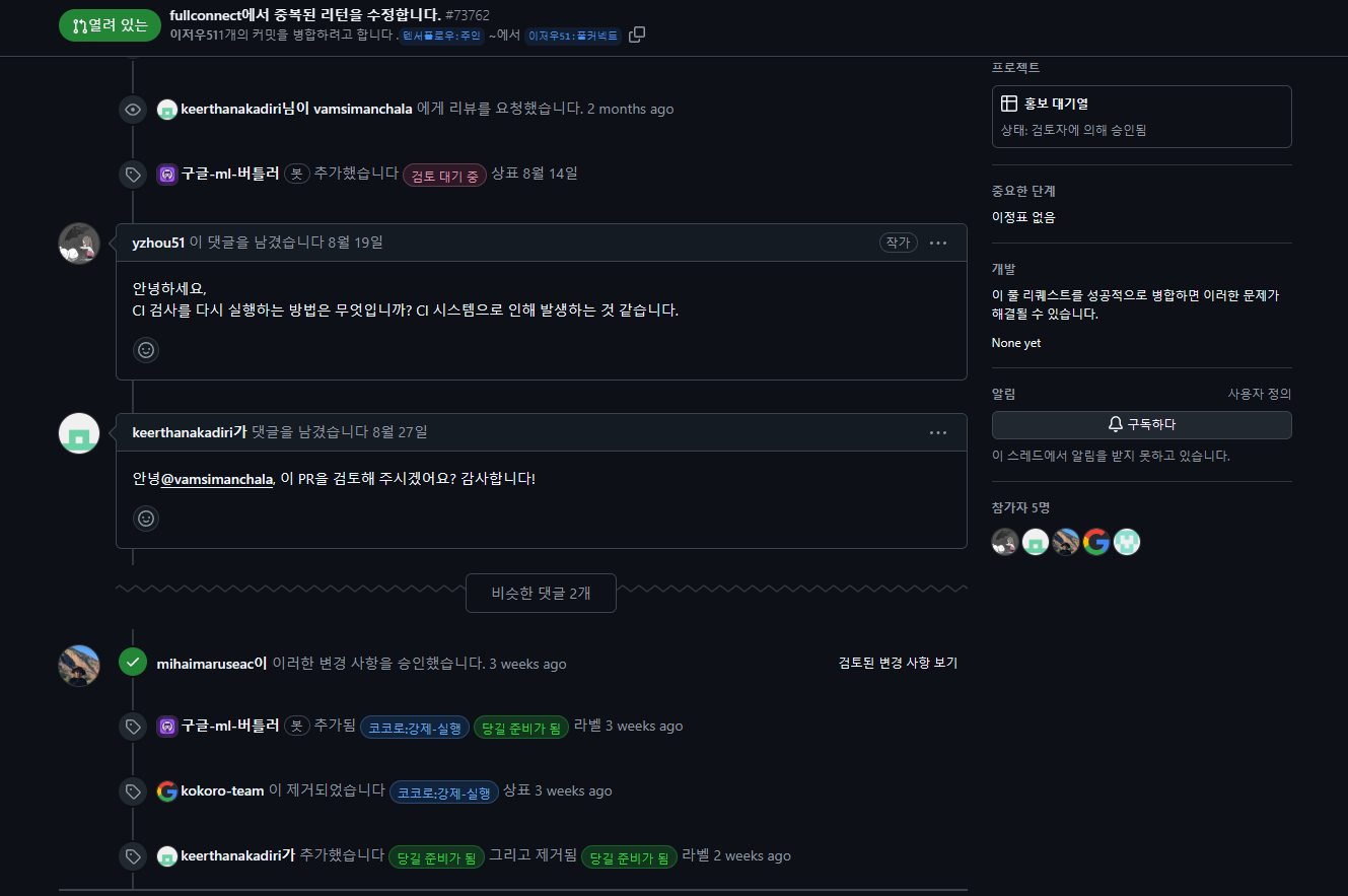 코드리뷰Code Review개발 과정에서 동료 개발자들이 작성한 코드를 검토하고 피드백을 주는 단계코드 품질향상, 버그 사전예방, 코드 일관성을 유지하는 데 큰 역할. 효과적인 코드리뷰리뷰할