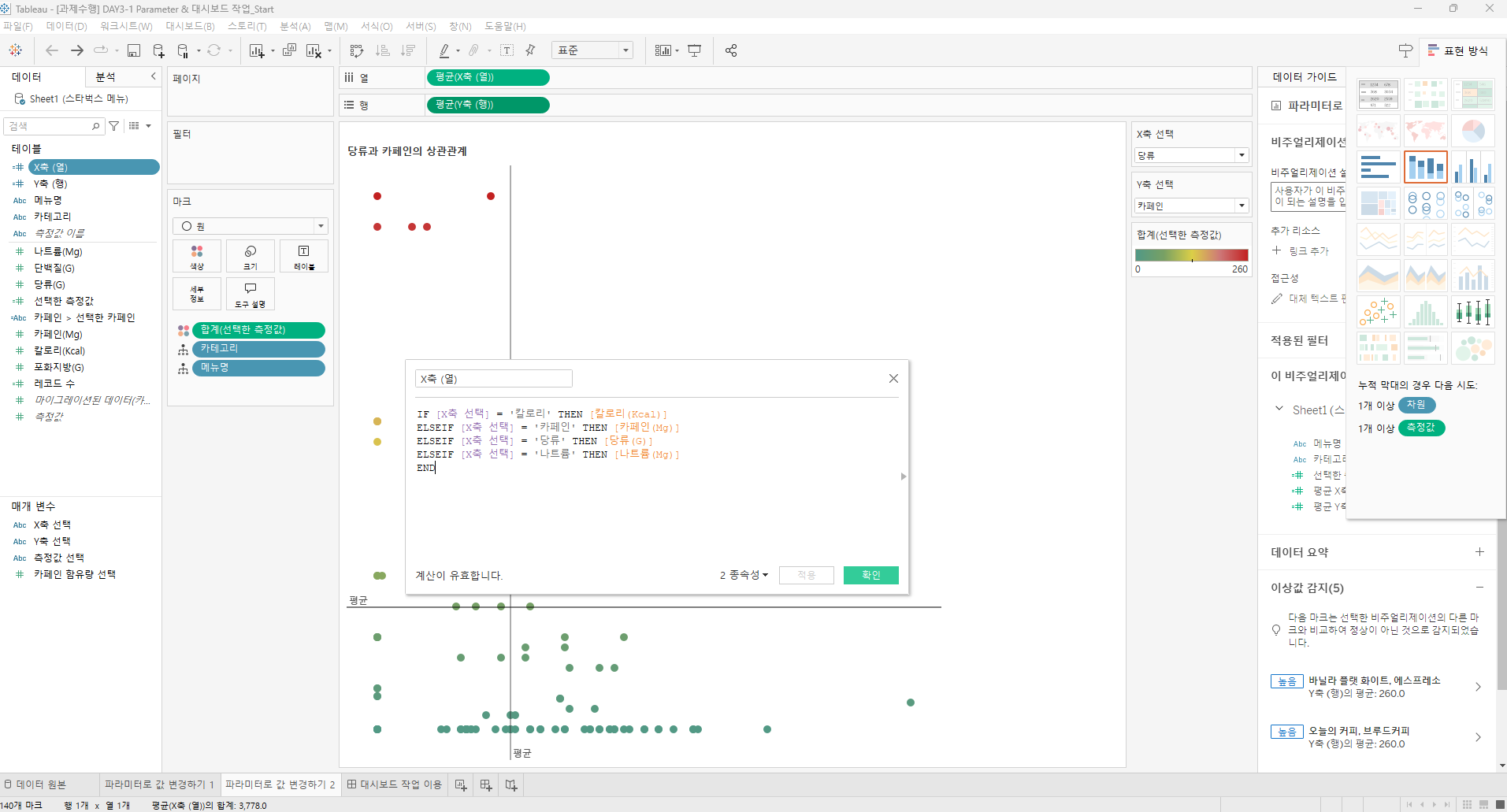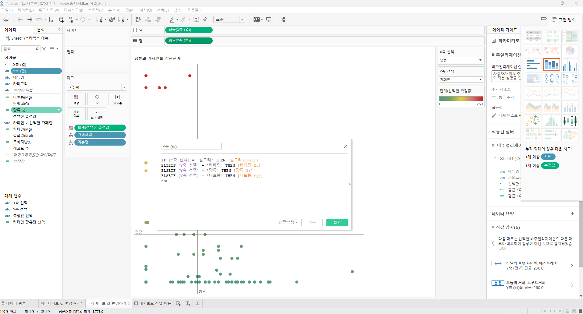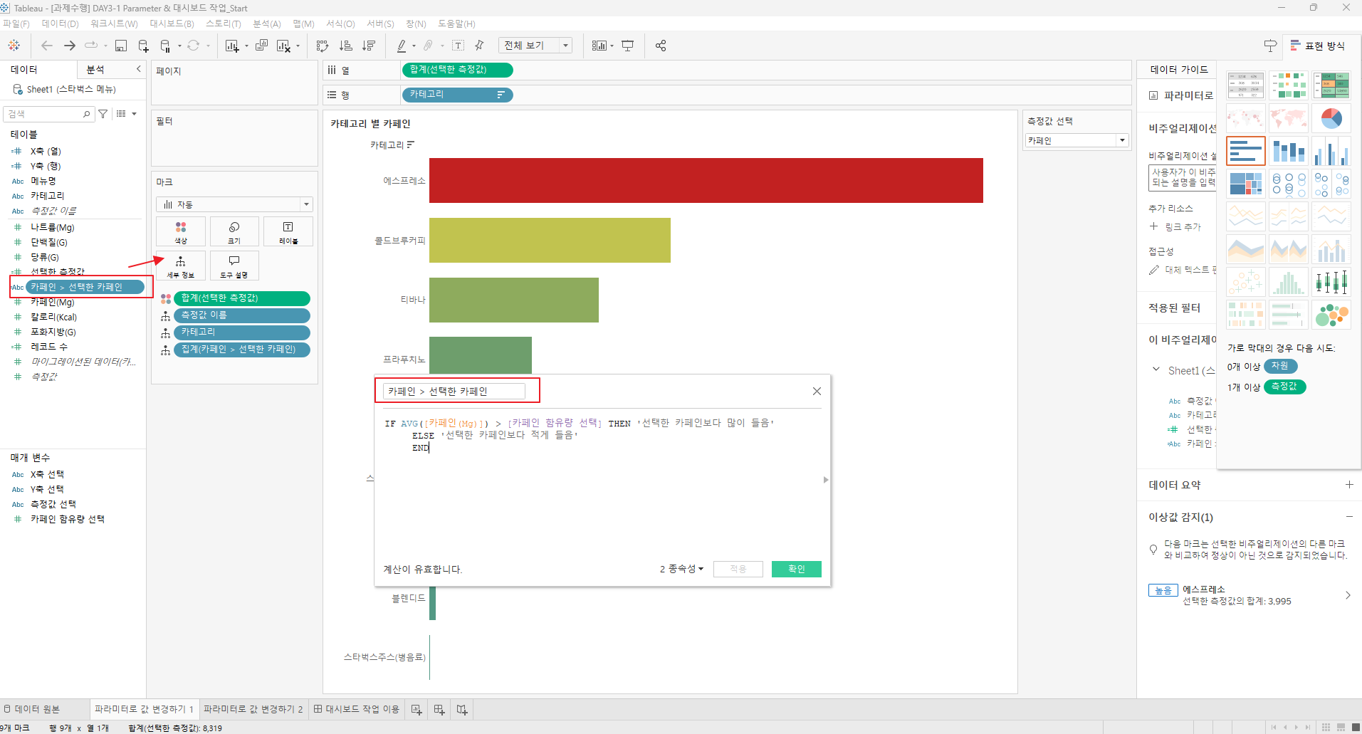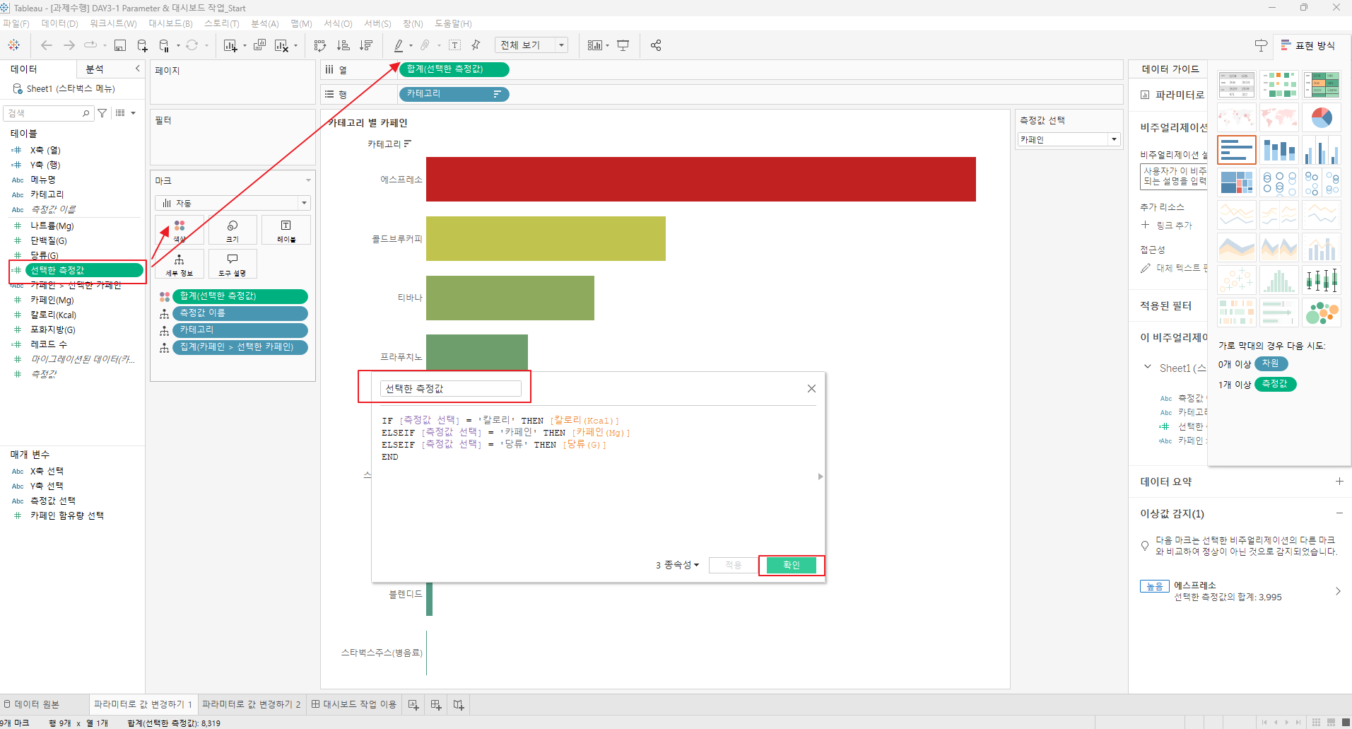 ELSEIF [X축 선택] = '카페인' THEN [카페인(Mg)]