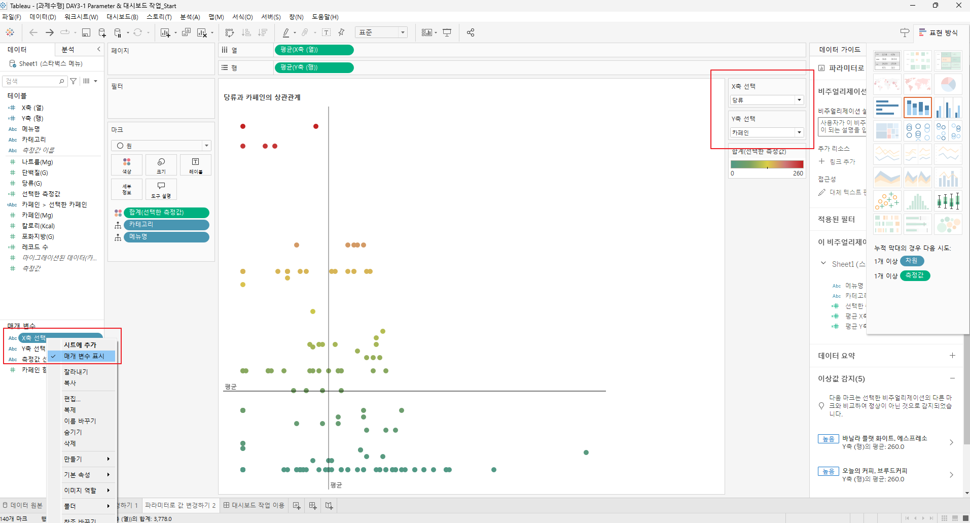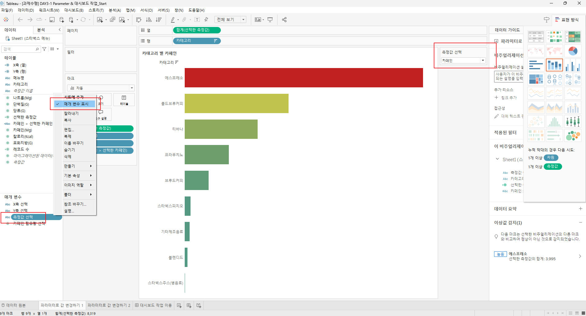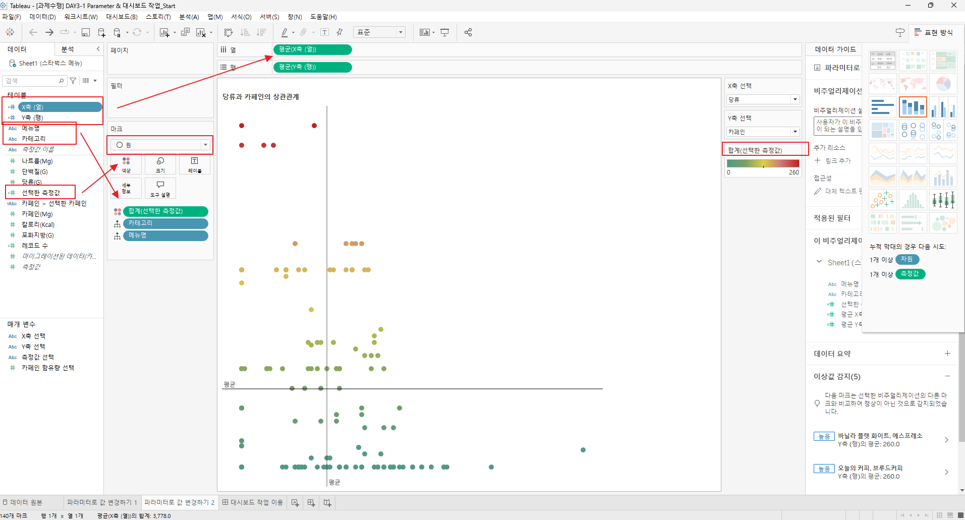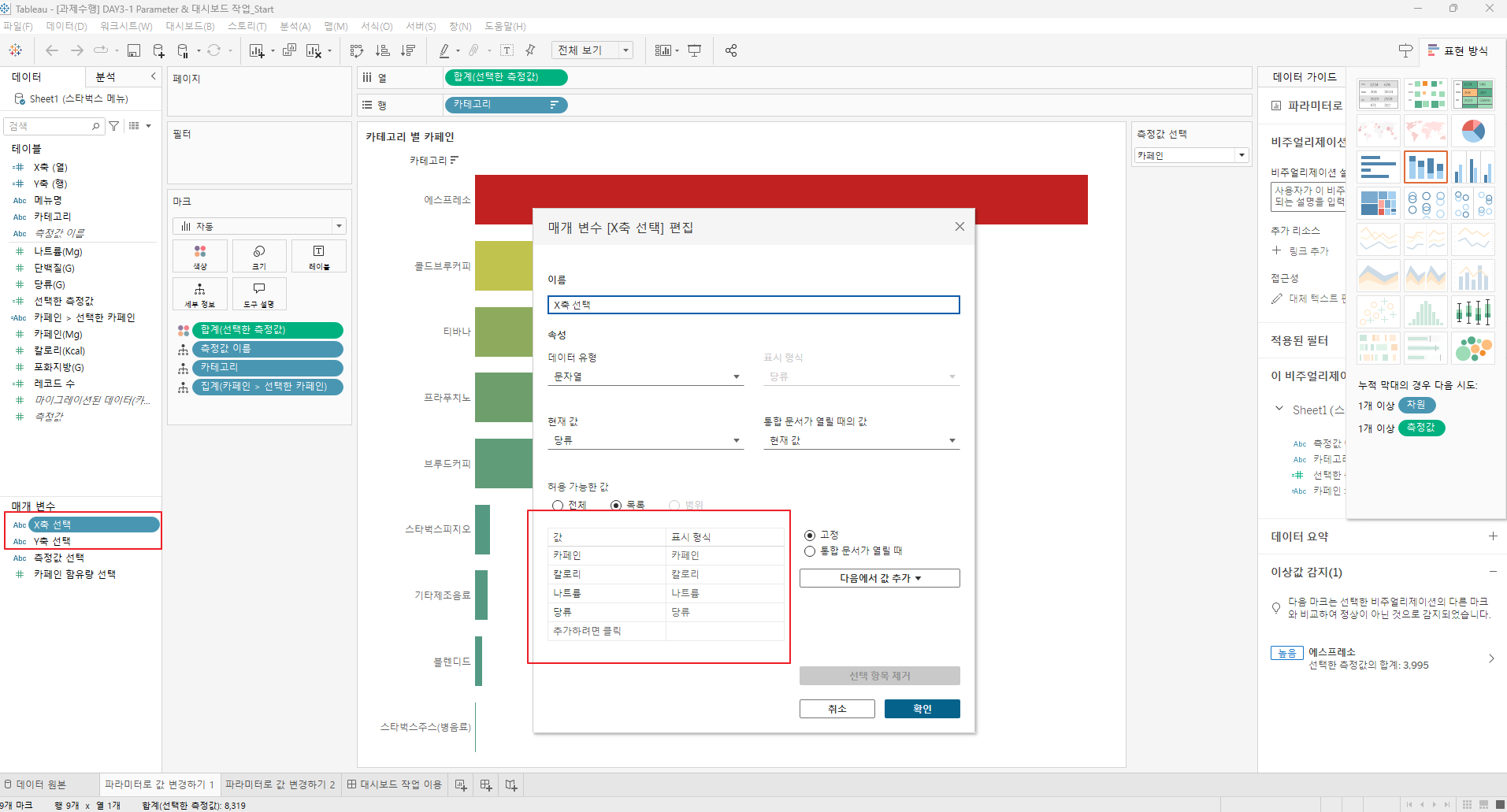 ELSEIF [X축 선택] = '카페인' THEN [카페인(Mg)]
