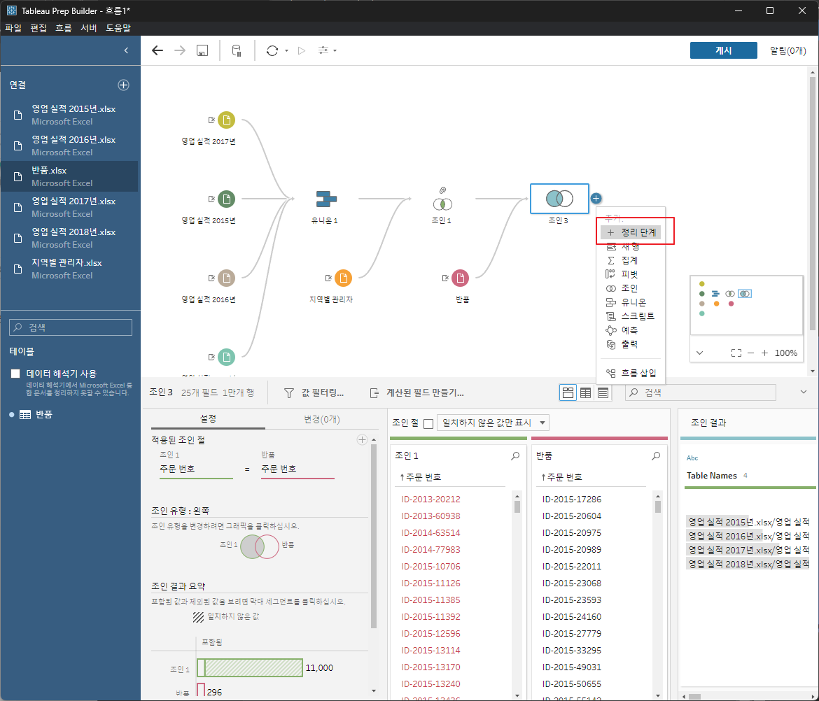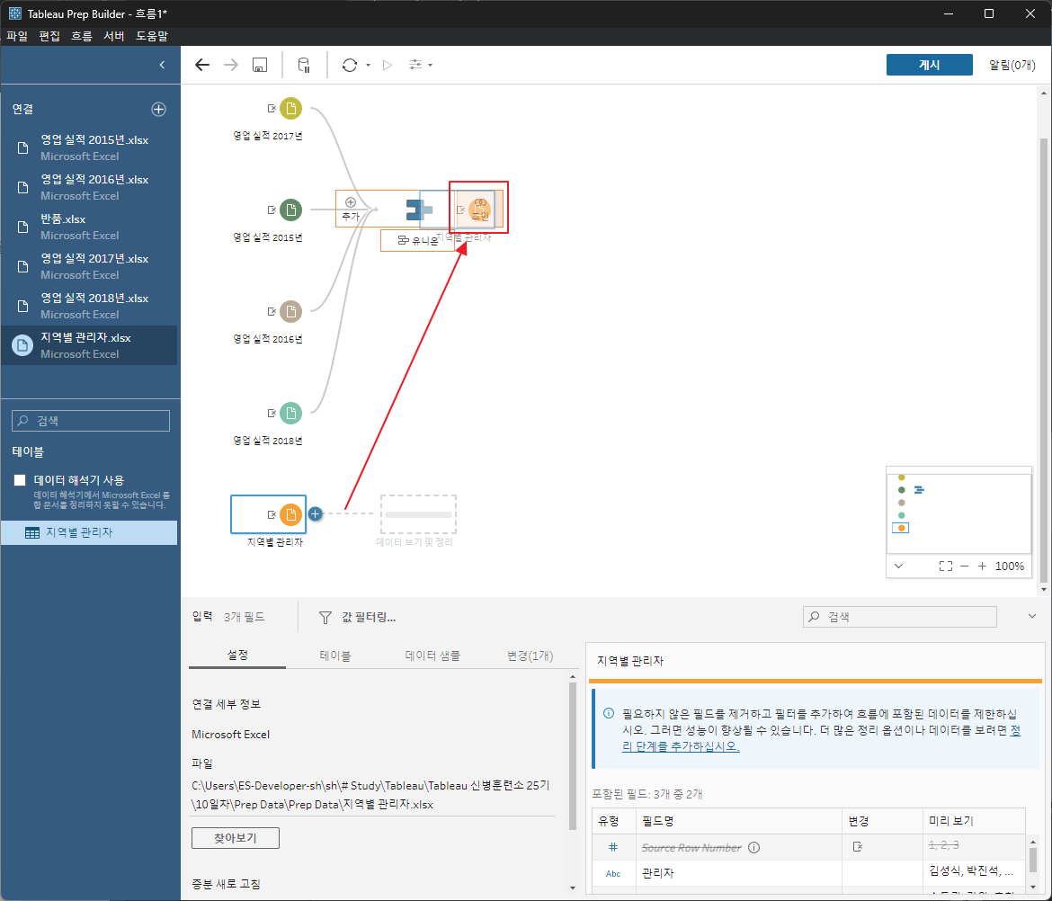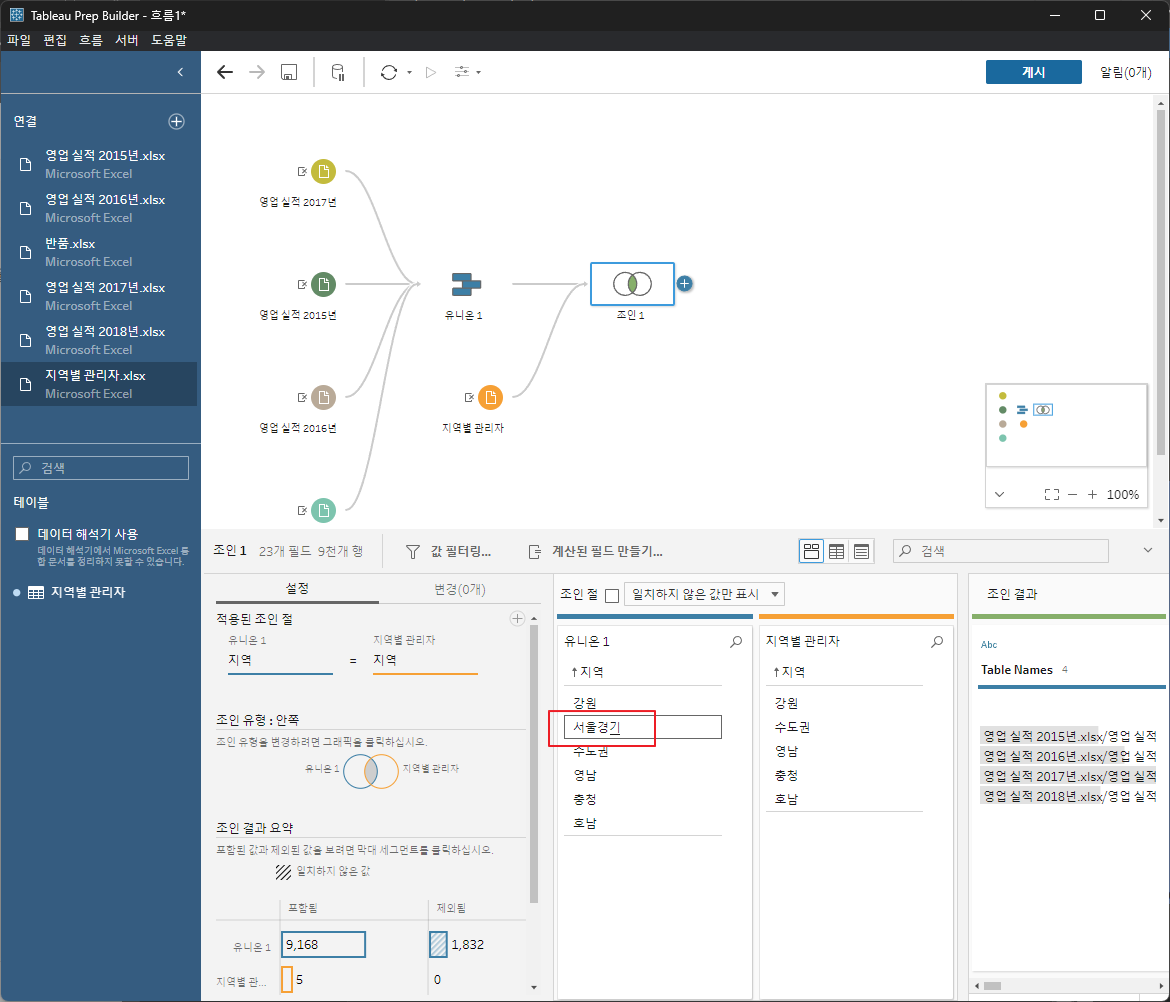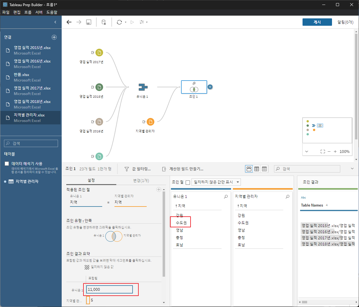 각데이터를 드래그해서 유니언한다.