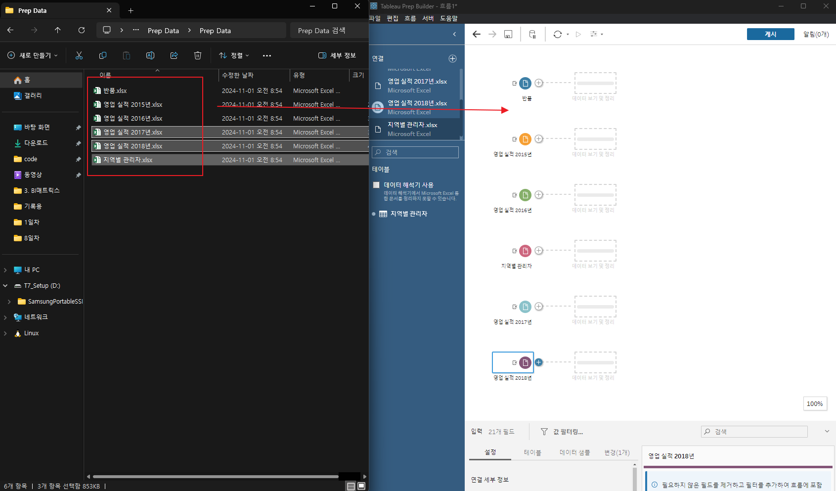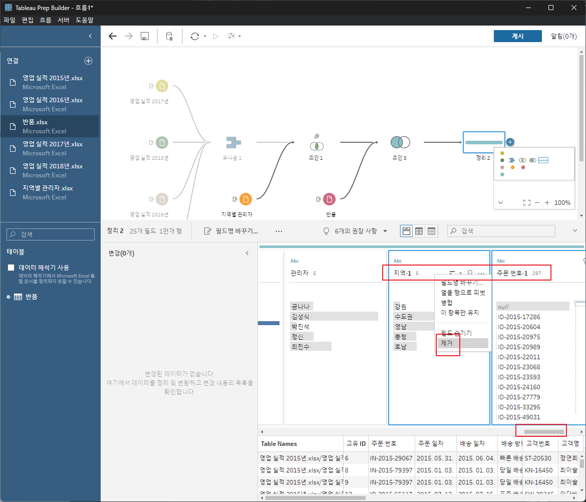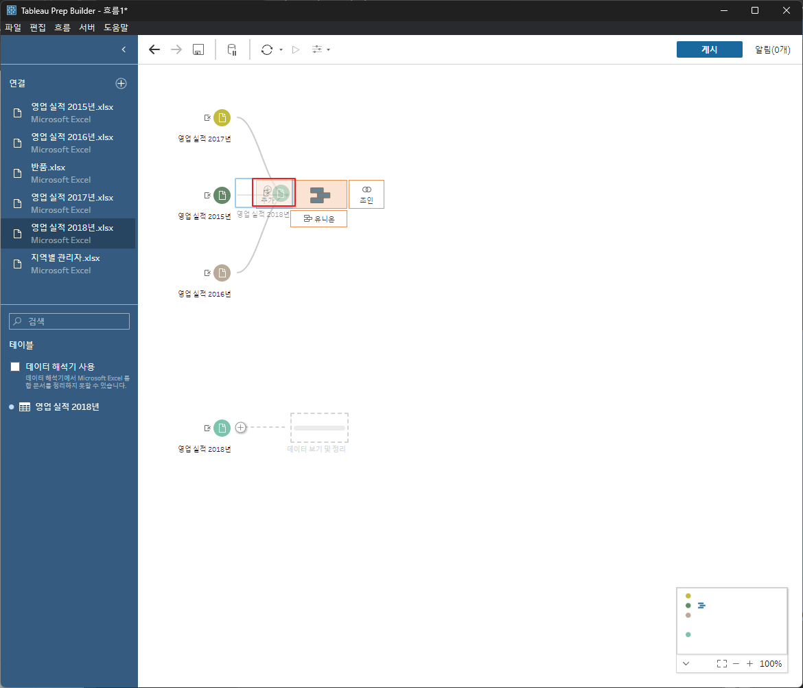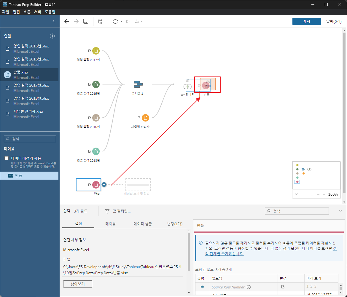 각데이터를 드래그해서 유니언한다.