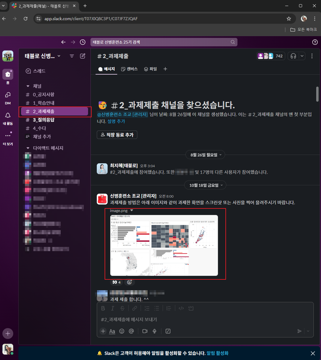 과제제출방에서 수행한 과제를 제출하면되는데,