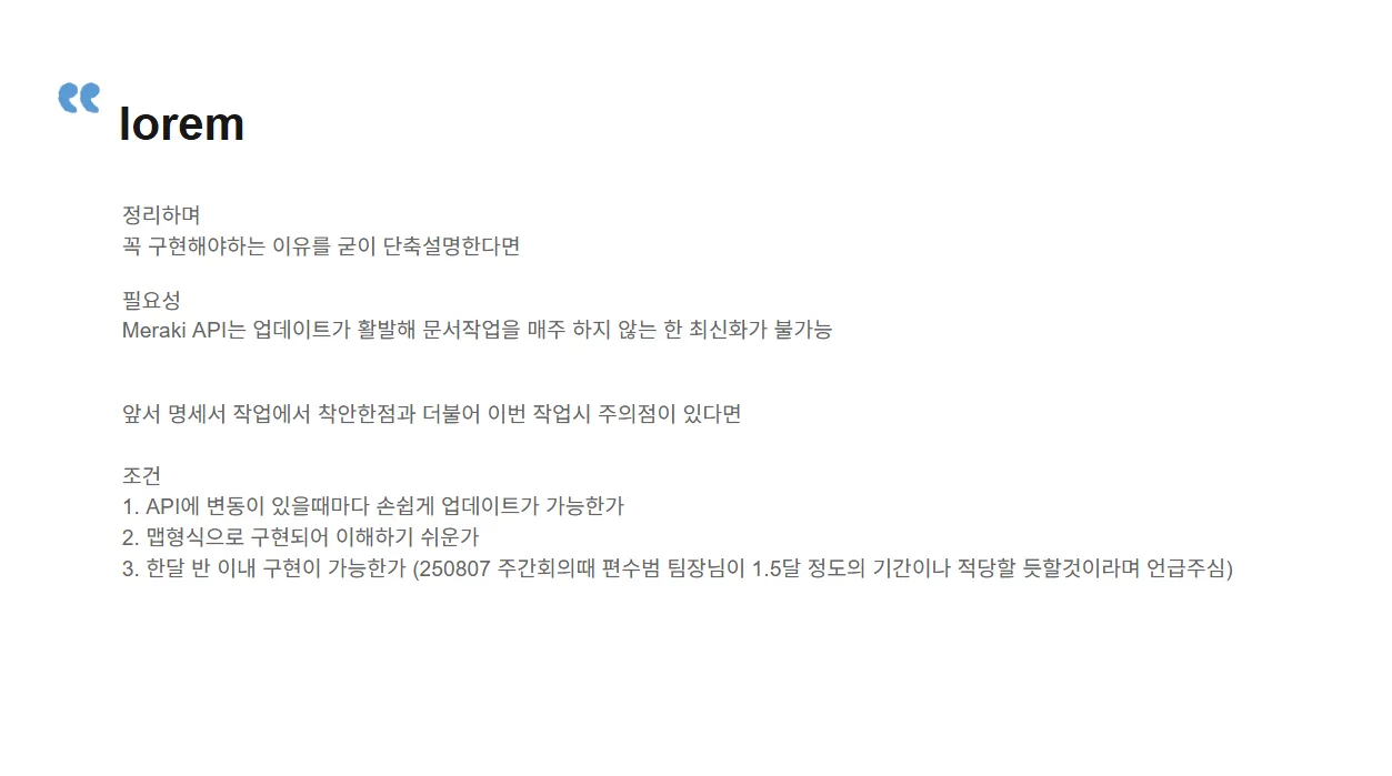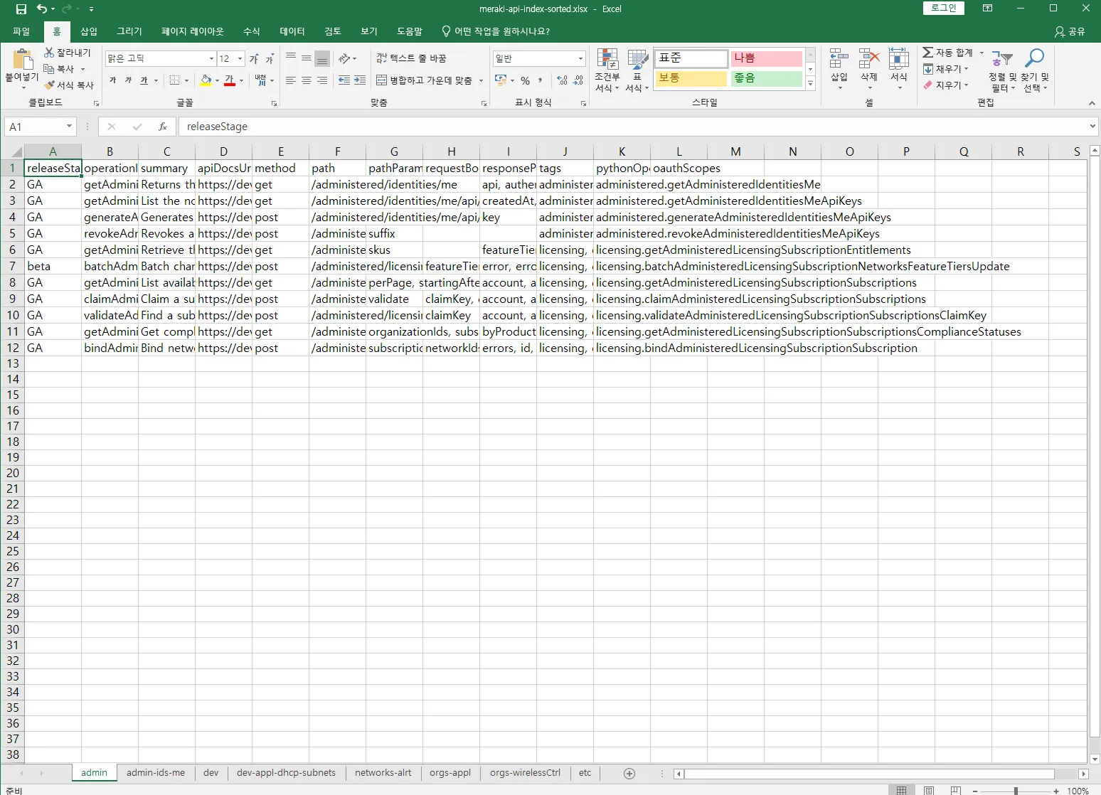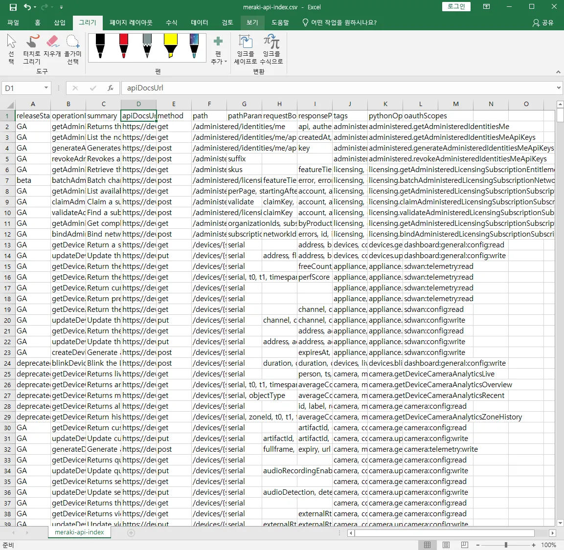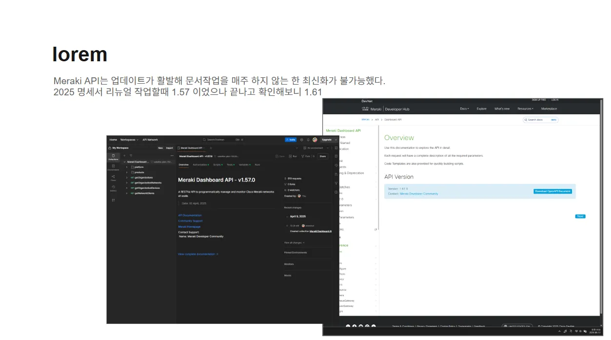 Meraki API는 업데이트가 활발해 문서작업을 매주 하지 않는 한 최신화가 불가능