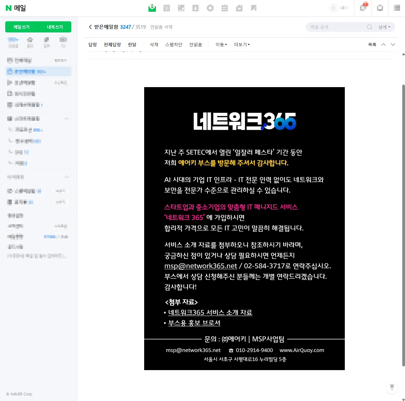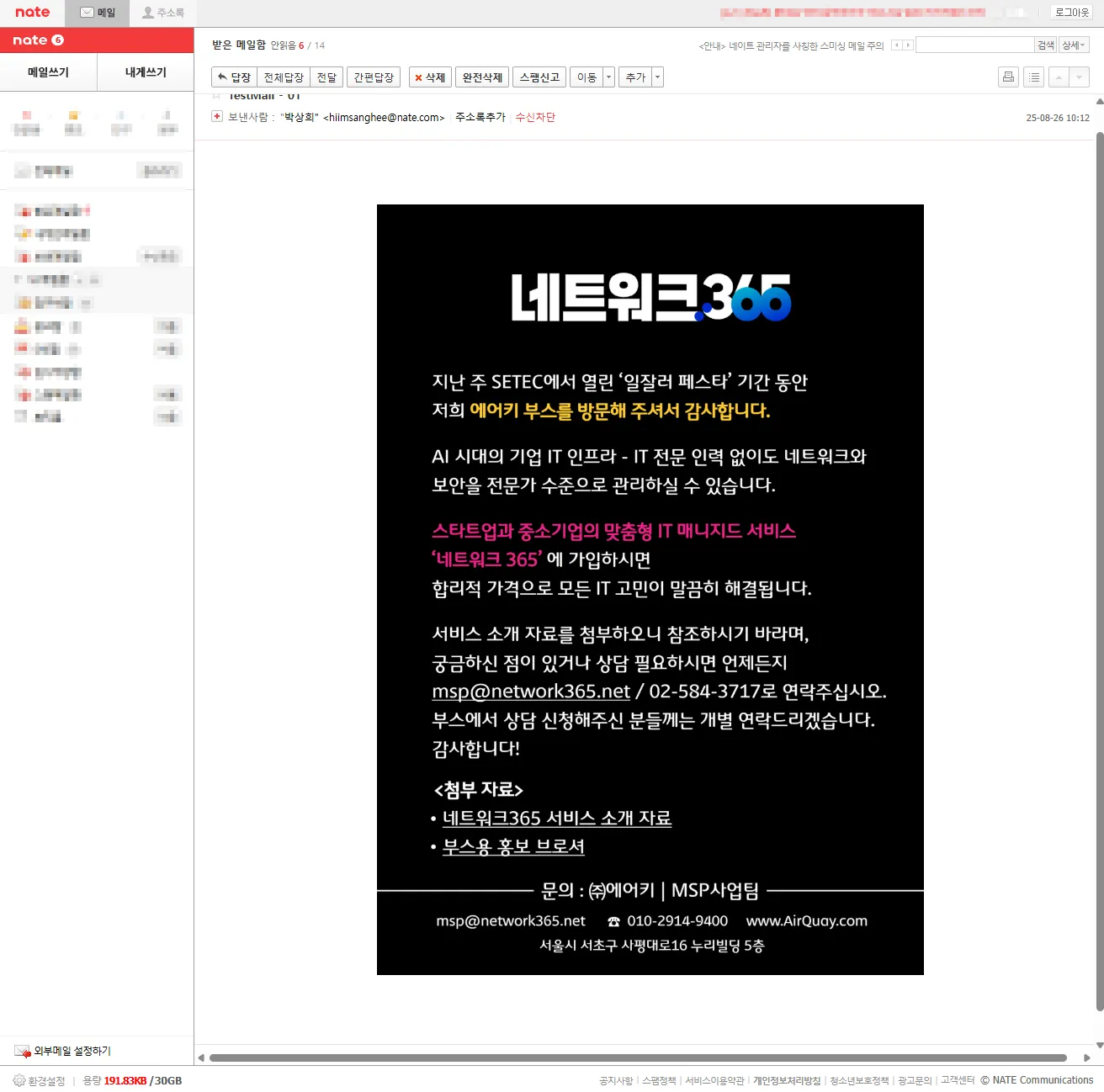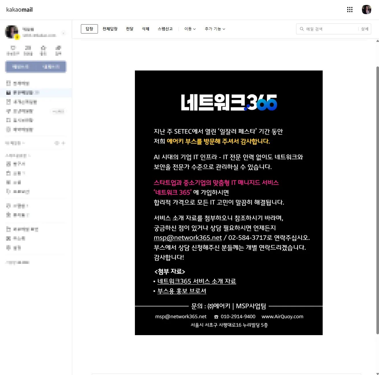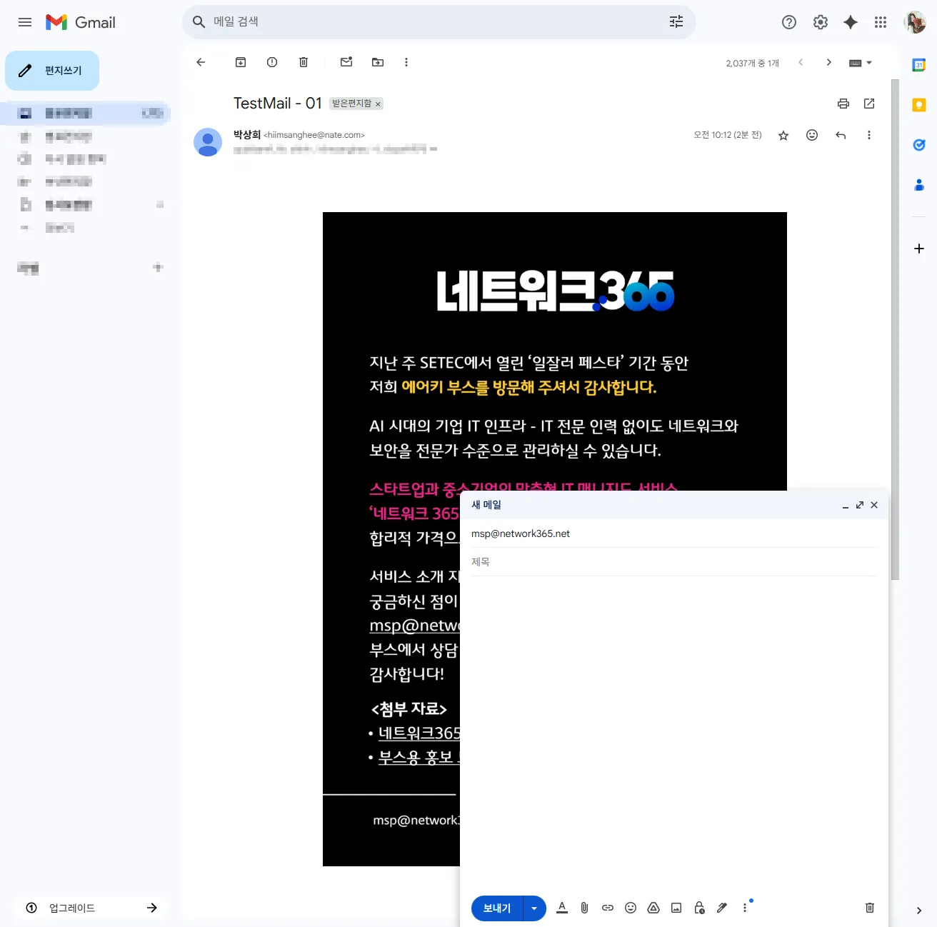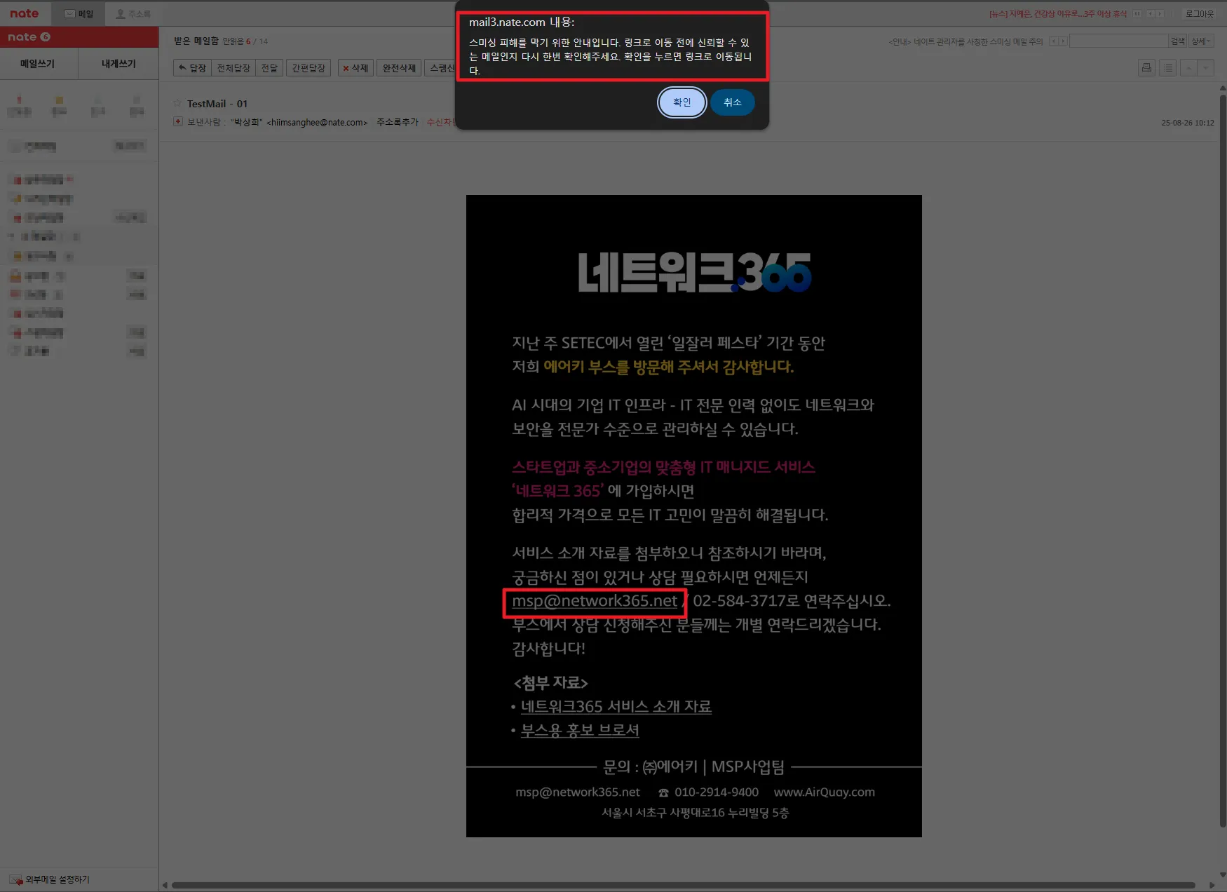 메일테스트는 임의로 한국인이 많이 사용하는 메일 순위에 의해 네이트, 네이버, 카카오(다음), G메일에서 정상작동을 확인 했습니다.