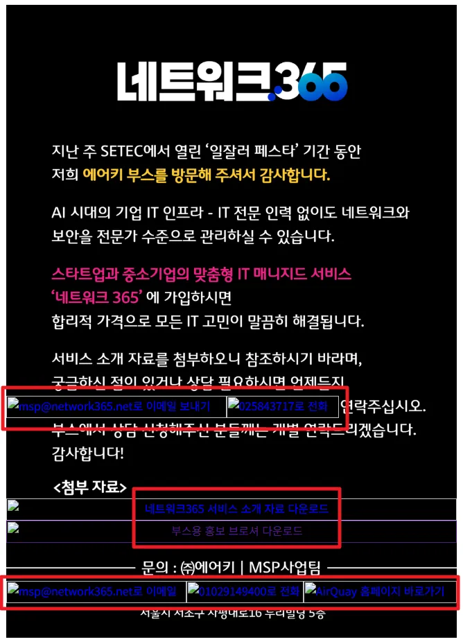 외 mailto, tel 코드를 이용해 '메일사가 지원할경우' 메일을 보내거나 전화를 걸 수 있도록 임의 적용해드렸습니다.