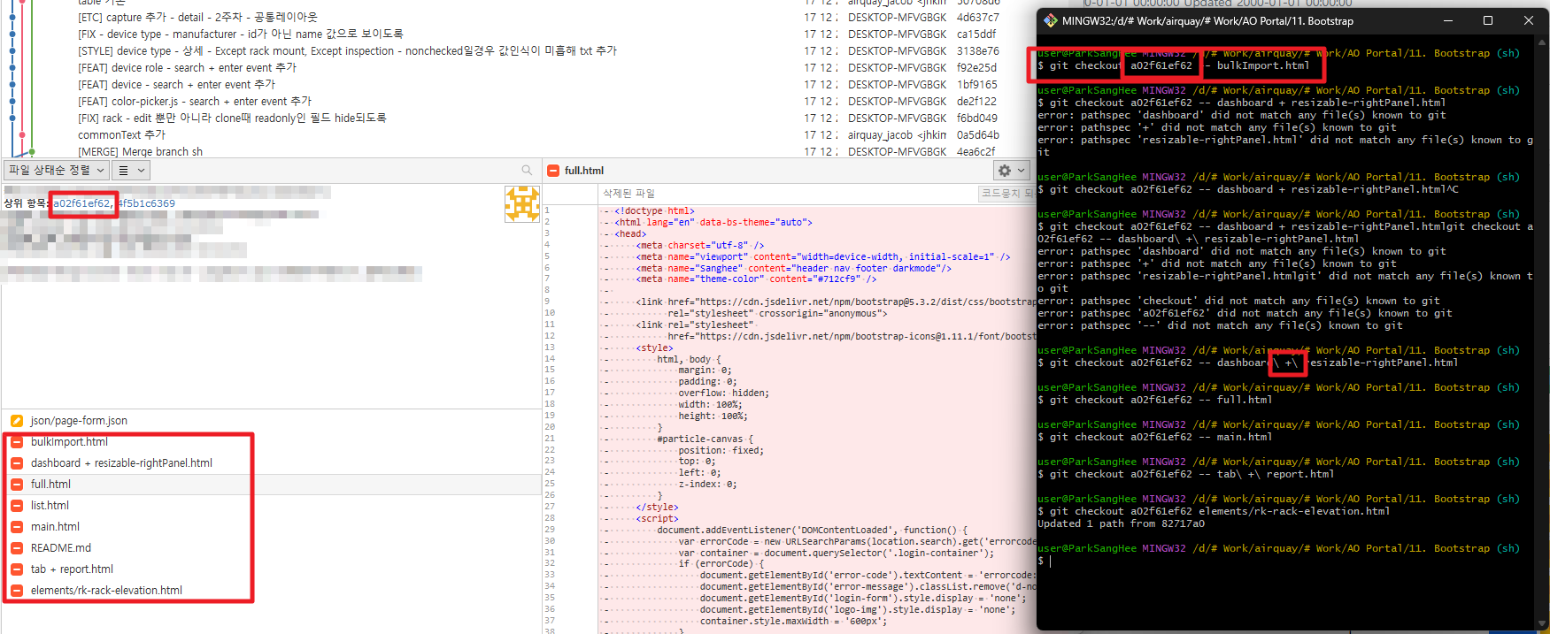 가끔 merge를 급하게 하다가 내가 가진 파일을 없애는 경우가 있는데 상대와 나의 파일이 다를떄 놓치는 듯 하다