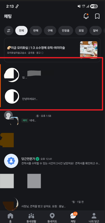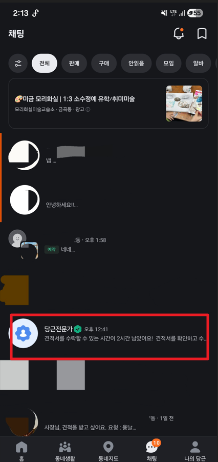 이제 채팅창 목록에 '당근전문가'라는 UI가 뜹니다. 클릭.