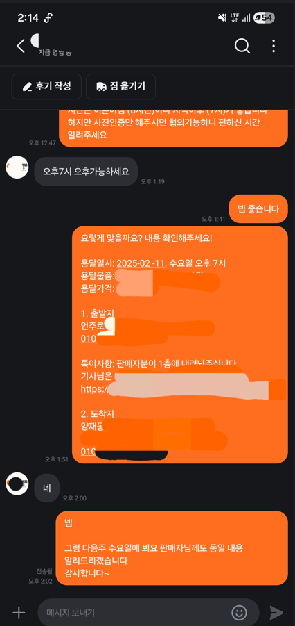 추후 어처피 용달 기사님과 연락을 하게 될테니까요