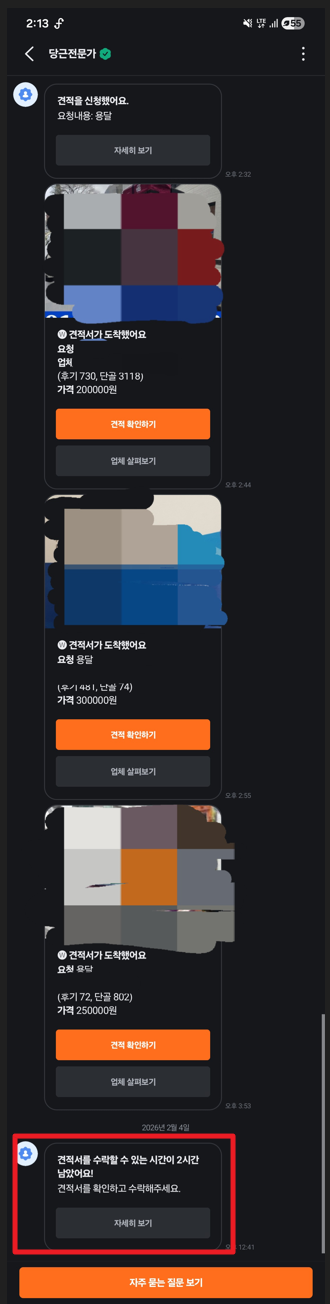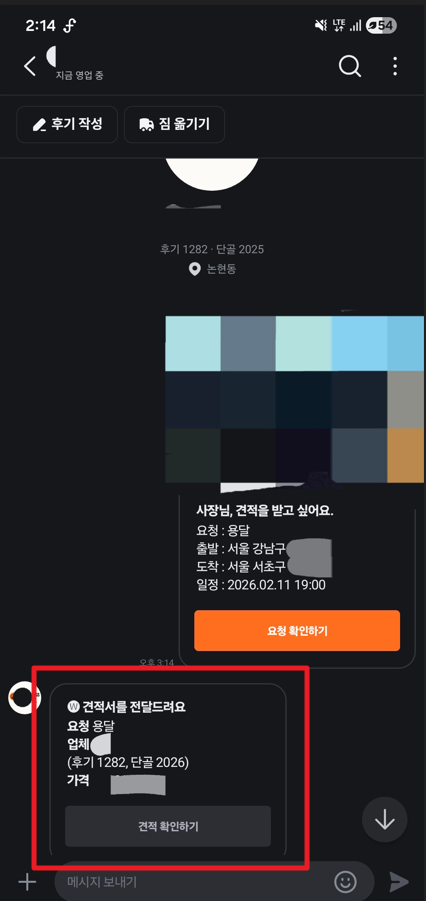 업체는 또 톡을확인하고 견적을 보내줍니다.