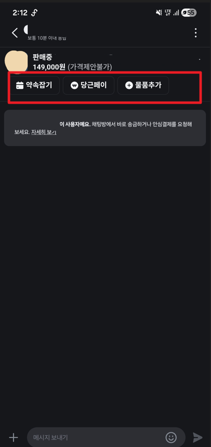 첫 톡 이후 판매자와 대화를 하면 버튼이 더 많아지면서 활성화됩니다.