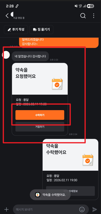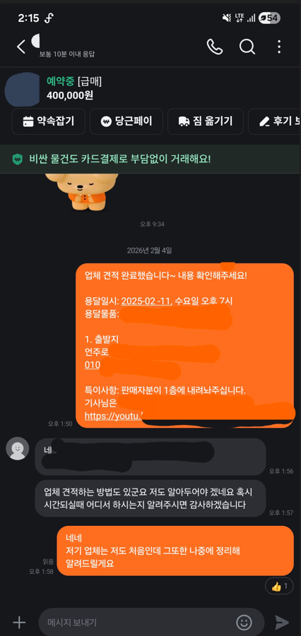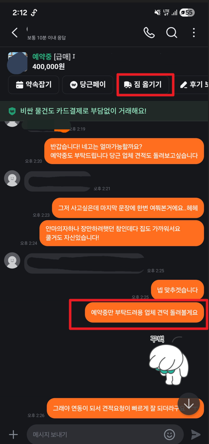 당근으로 용달 견적을 받고 약속을 잡는 것은 생각보다 쉽습니다.