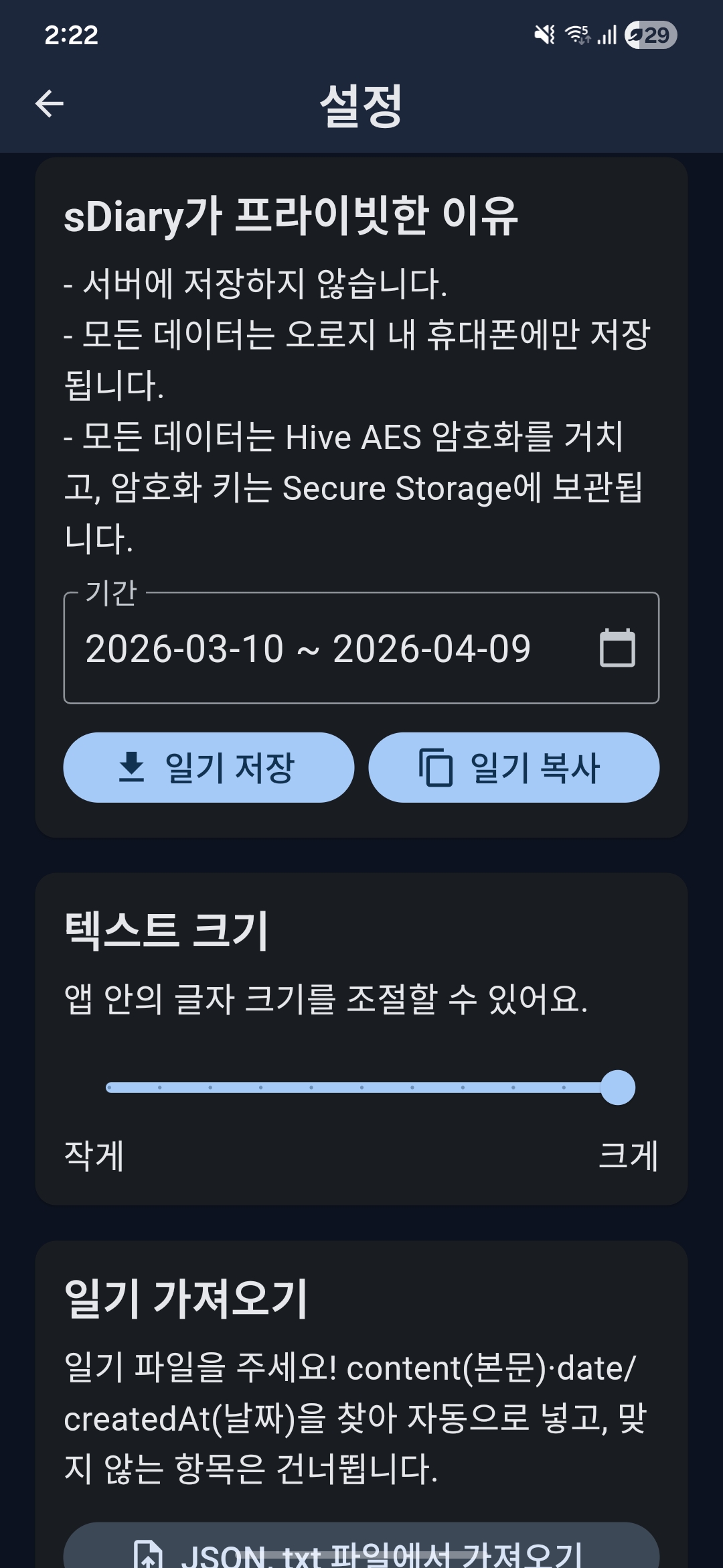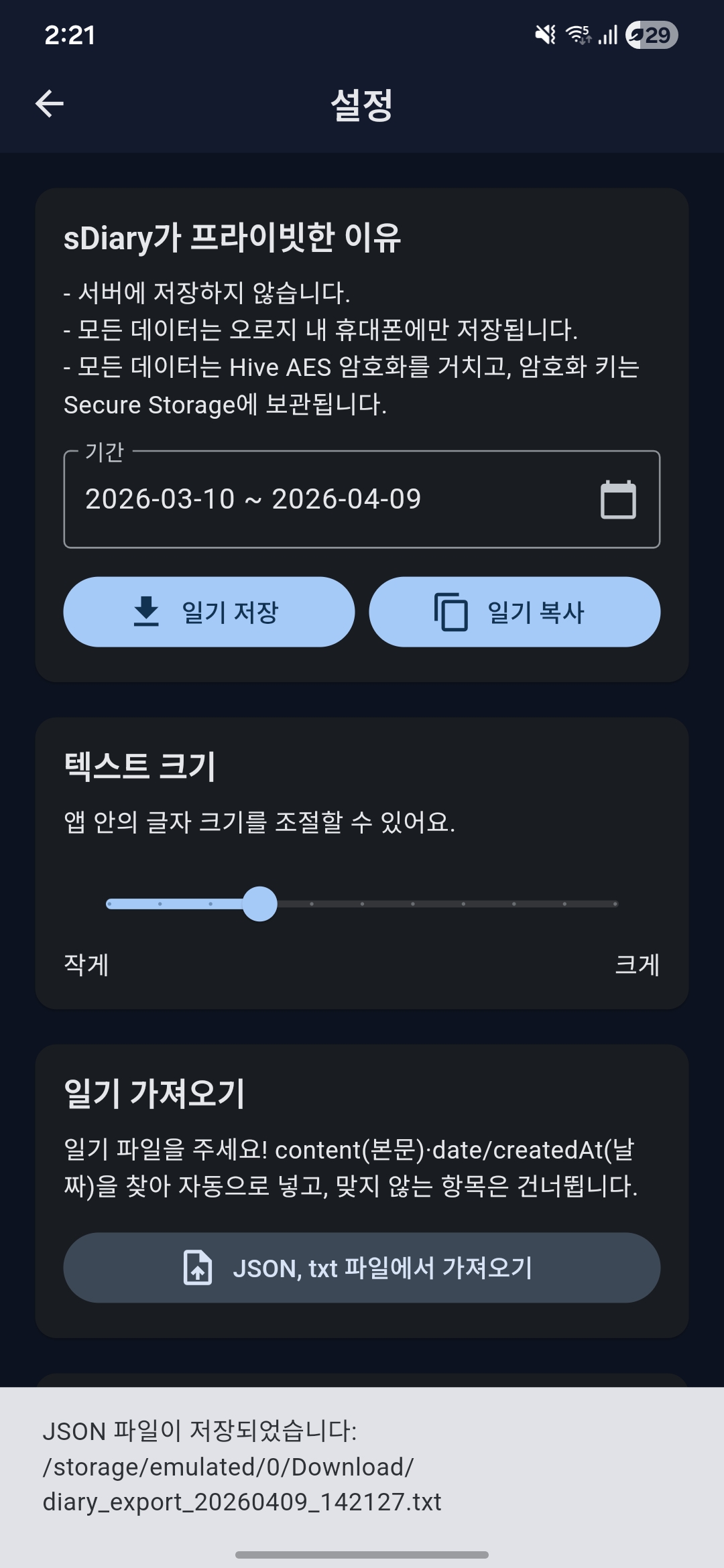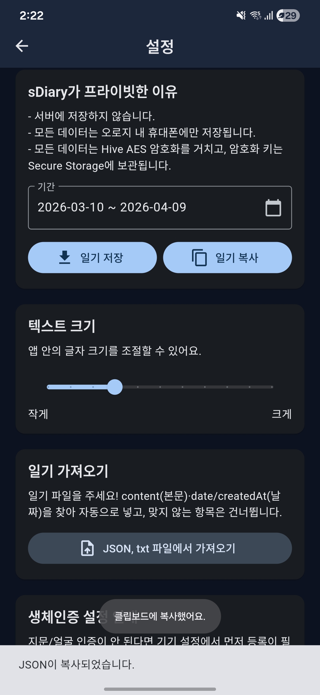 1. sdiary 관련 어필 및 데이터 저장 및 복사 가능