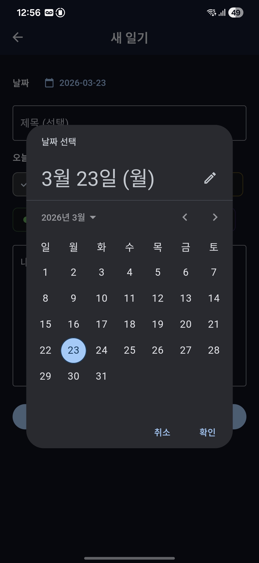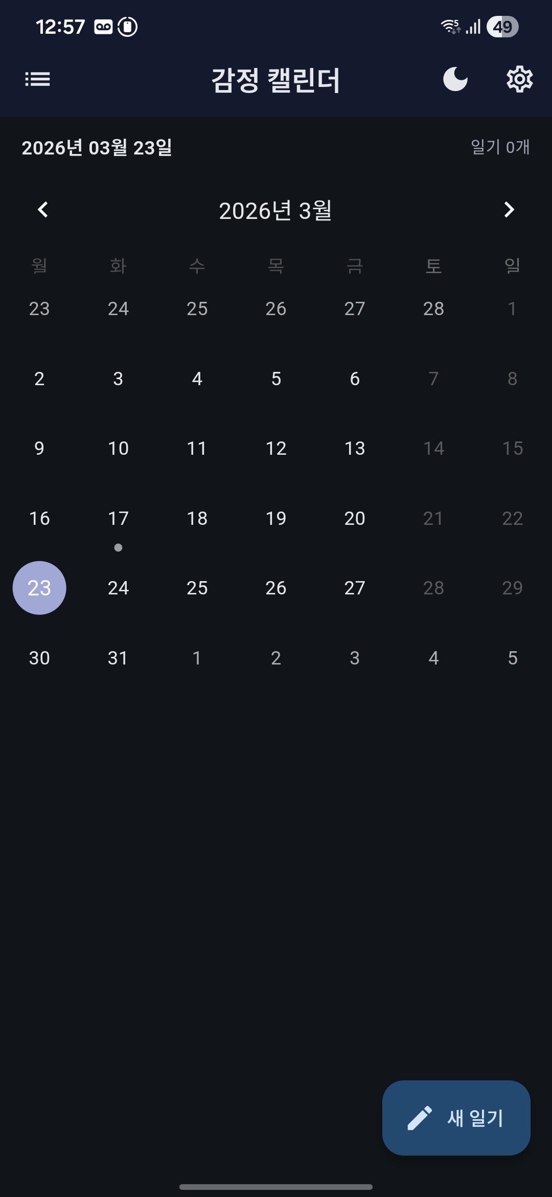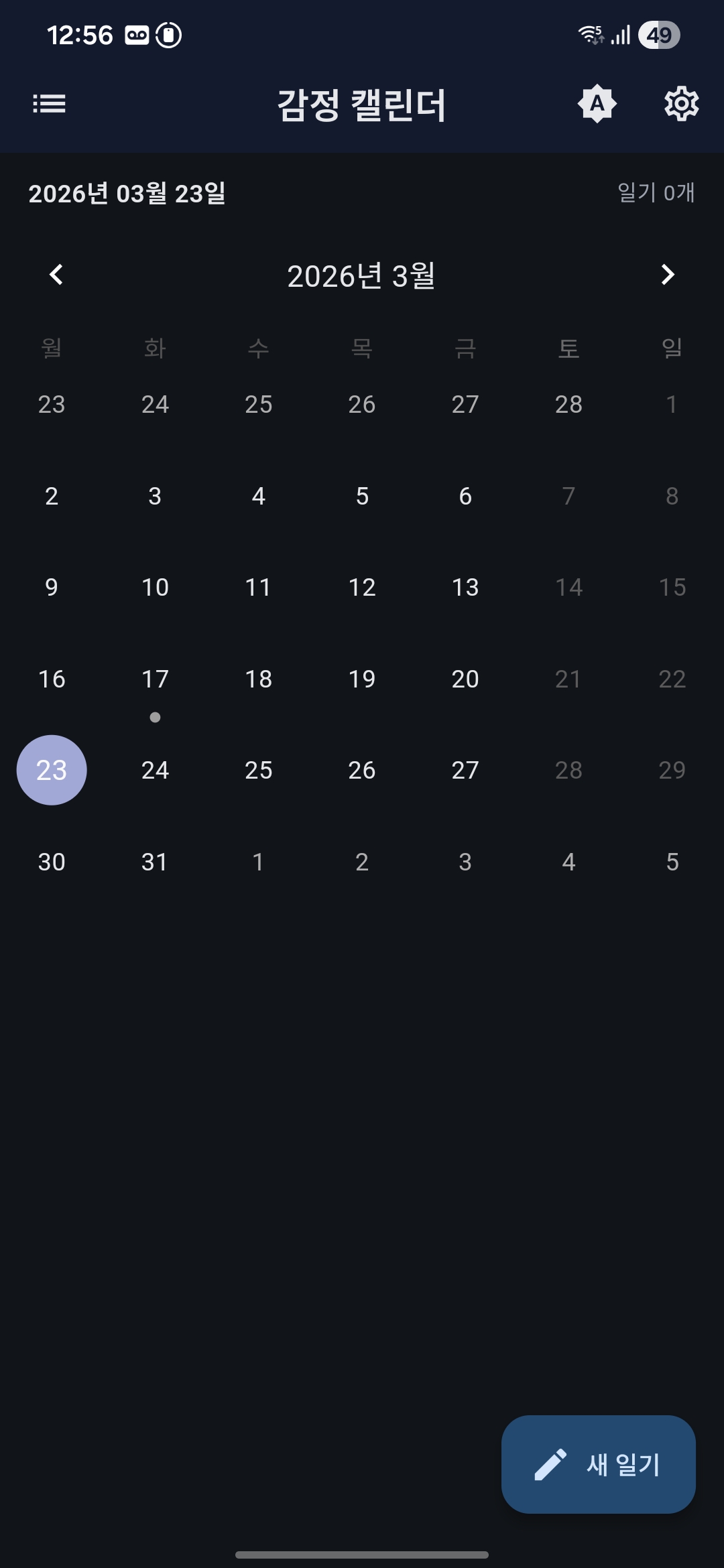 기본 화면은 달력형.