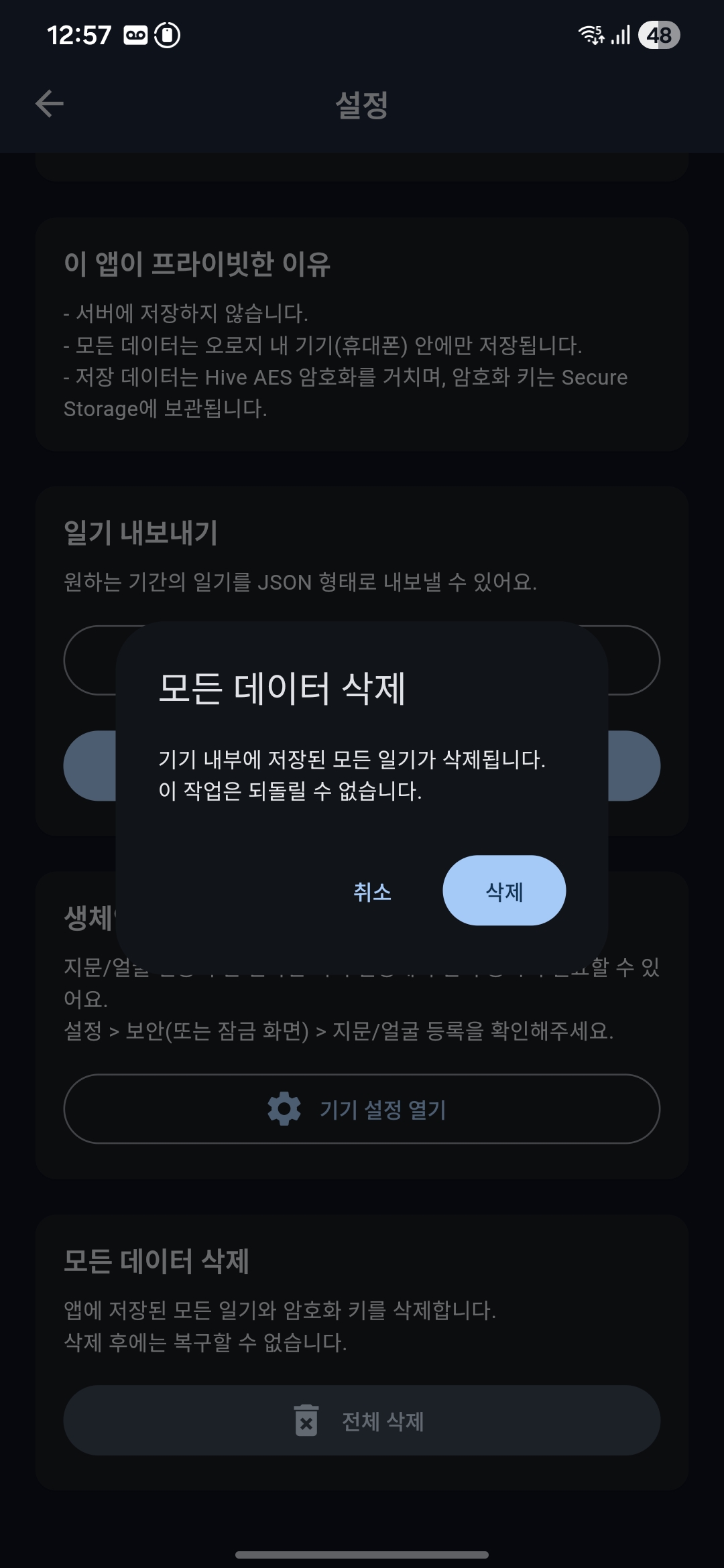 생체인증 설정 확인