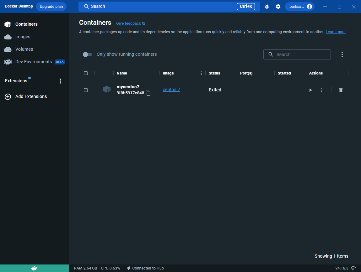 docker run centos:7 https://standout.tistory.com/196 docker 컨테이너 확인하기 docker 전체 컨테이너를 확인해보자. -a = all docker ps -a standout.tistory.com
