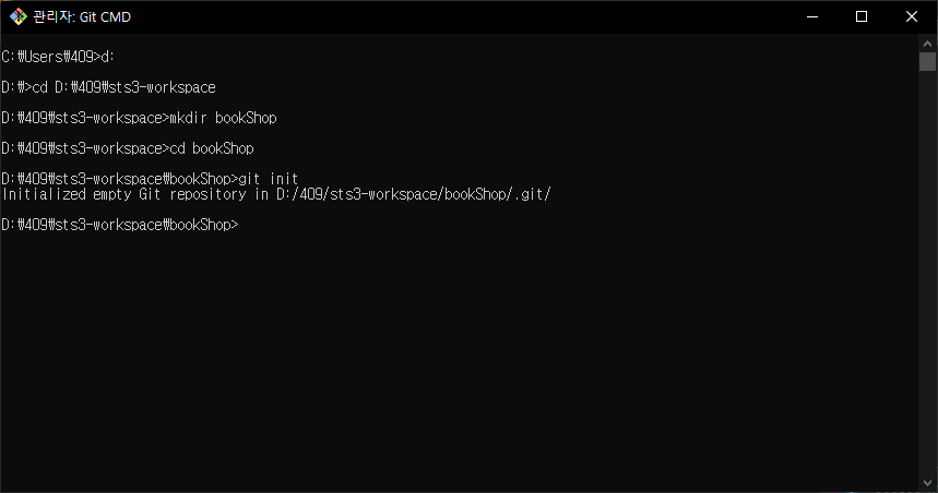 D:\409\sts3-workspace\bookShop>git init