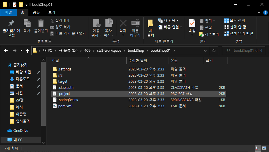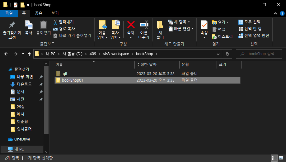 D:\409\sts3-workspace>mkdir bookShop