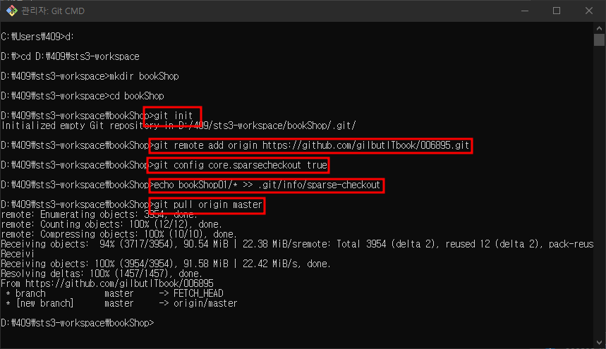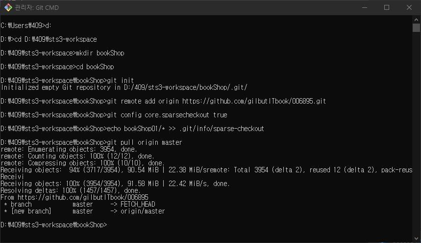 D:\409\sts3-workspace\bookShop>echo bookShop01/* >> .git/info/sparse-checkout