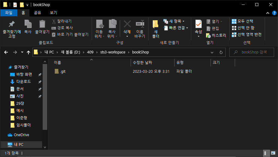 1. 원하는 경로로 이동해 폴더생성