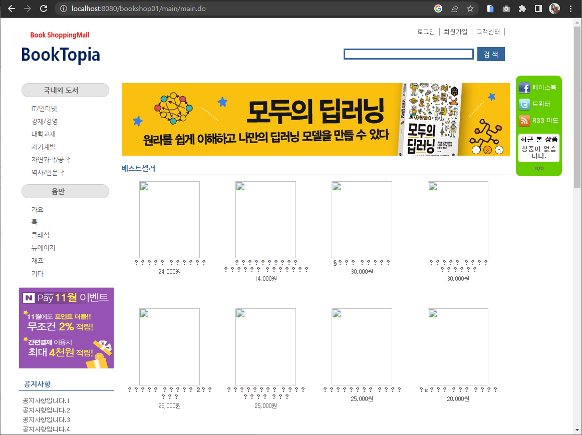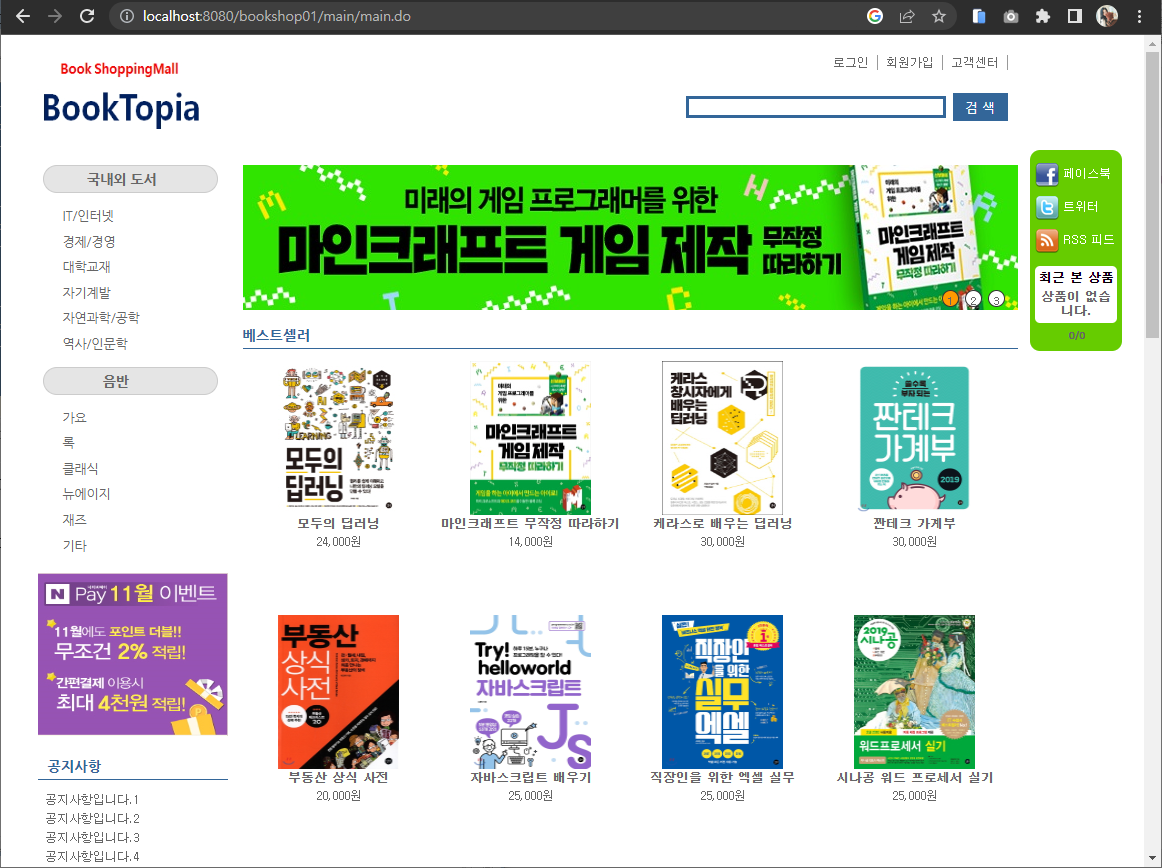 길벗에서 가져온 bookshop을 브라우저에 띄워보자.