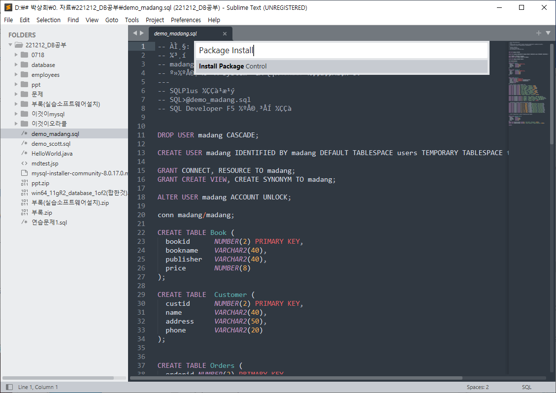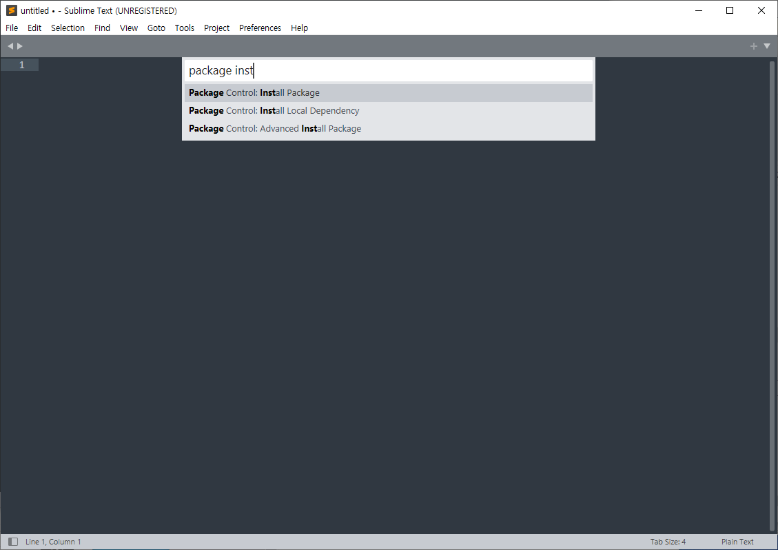 파일을 모두 닫은 후 회색바를 클릭해 검색 - package install Package - convertToUTF8