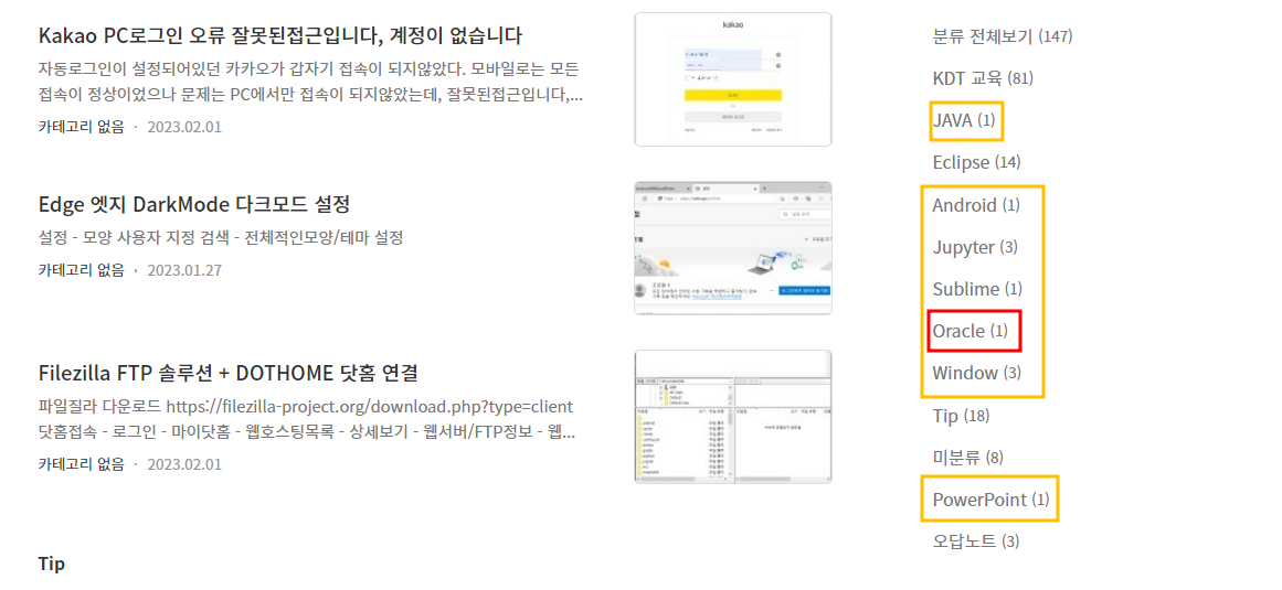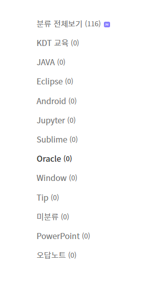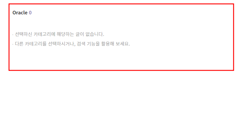 실제로 Oracle카테고리로 이동하면 글이 없다는 안내를 볼 수 있는데