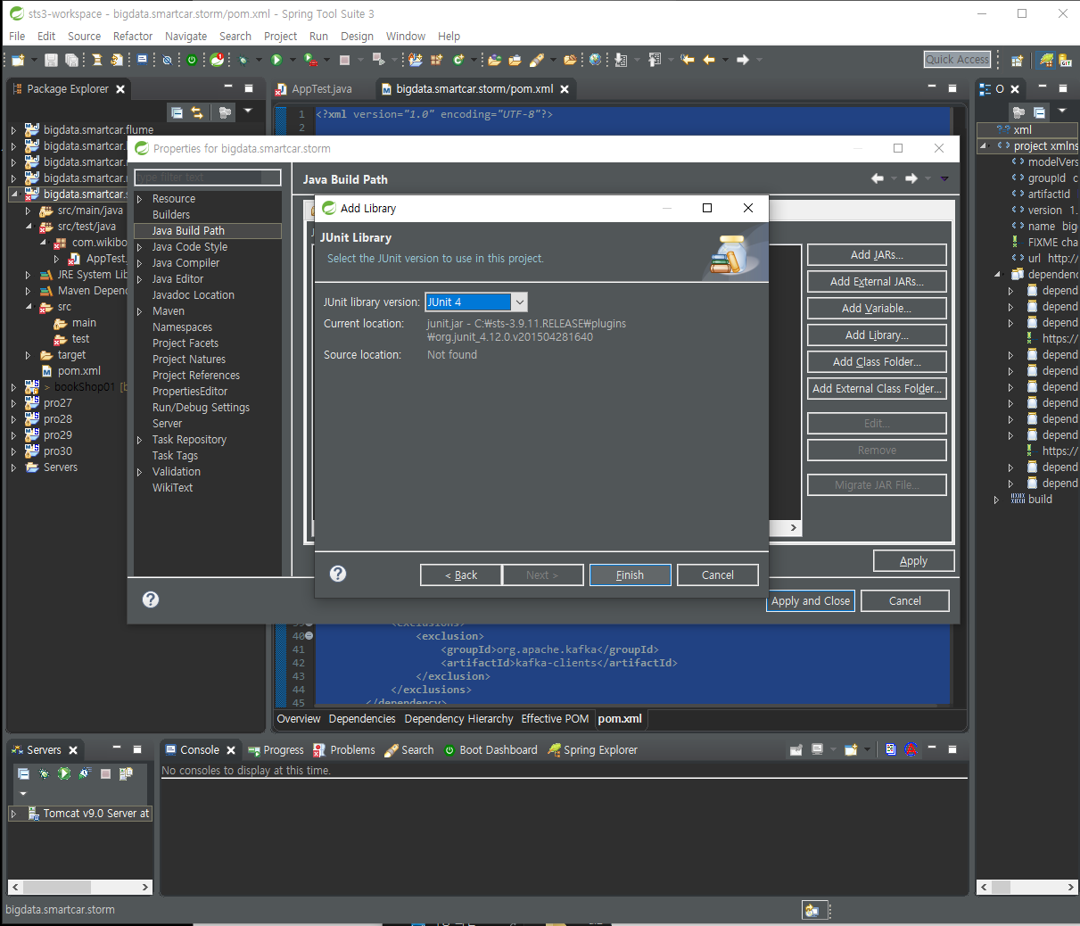 JUnit 선택 > next > 알맞은 junit버전 선택 (ex. JUnit4) > finish > Apply and Close